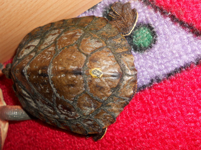 Prosím o rady. Opět jde o nalezence, v želvách se nevyznám. Jedná se o želvu mapovou? Myslím, že má dost poničený krunýř, ráda uvítám rady co s tím. Podmínky chovu si najdu na netu, pokud mi potvrdíte správné určení druhu. Děkuji všem.