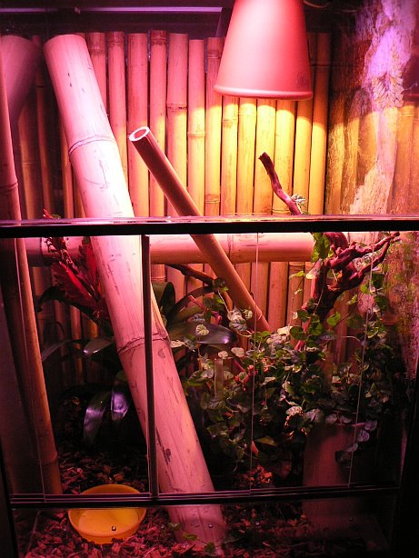 V Brně v Baumaxu jsem chtěl koupit do nového terária tlustý bambus. V té zahradnické části jsem ho našel, ale byly všechny popraskané a pod 200Kč nešly. Tak jsem vzal trubky - stejný účel plní a je-li člověk šikovný, stačí oblemcat trubku nějakým lepidlem a naházet písek, rašelinu... cokoliv.