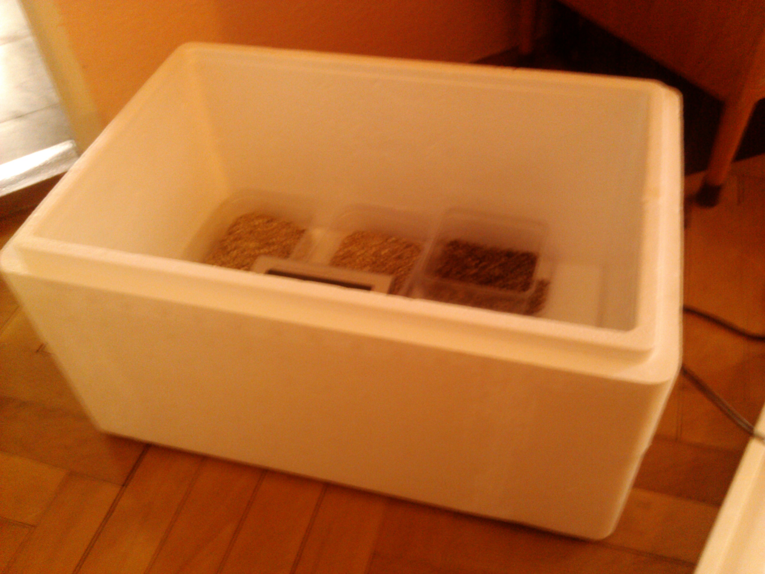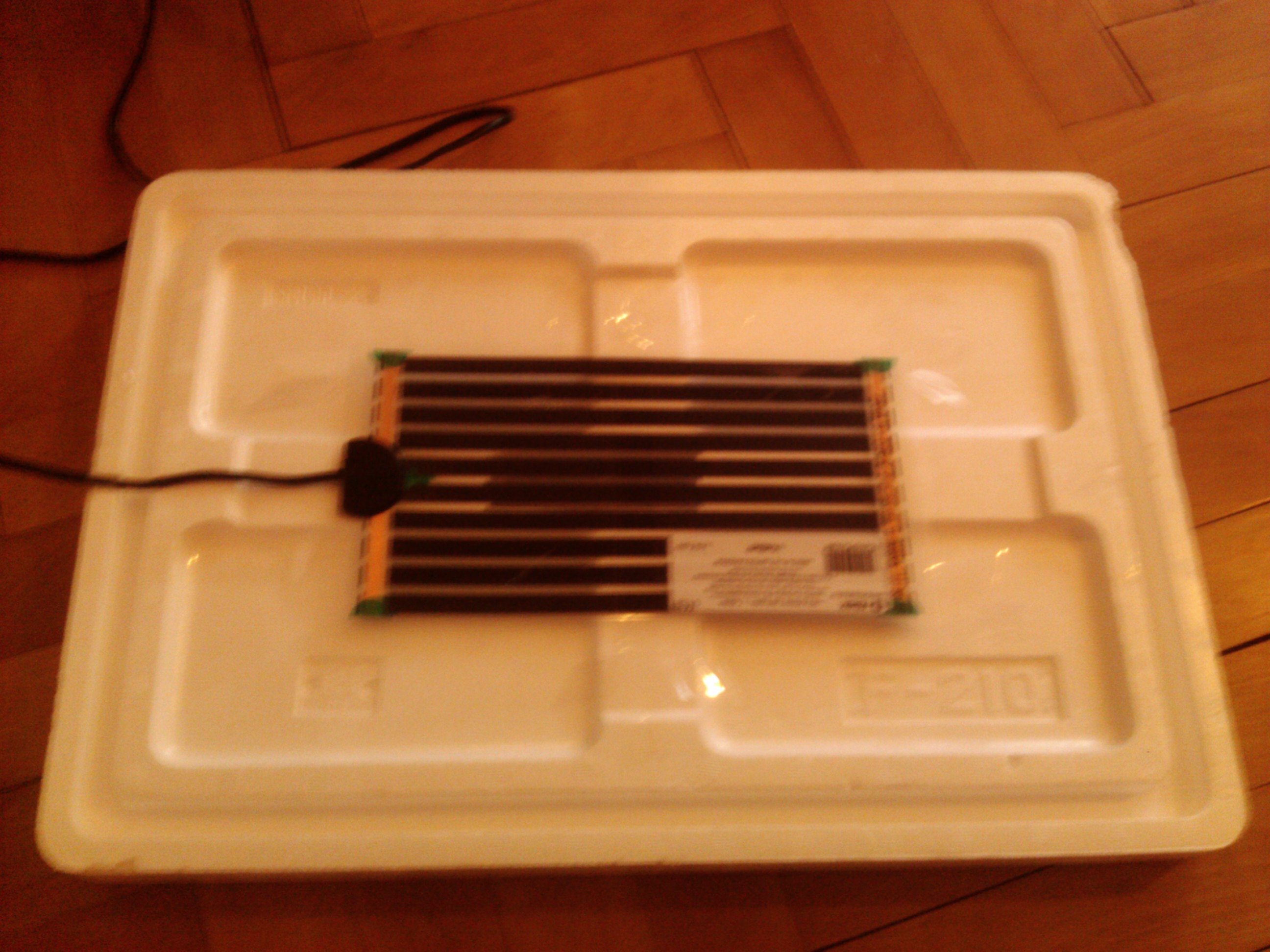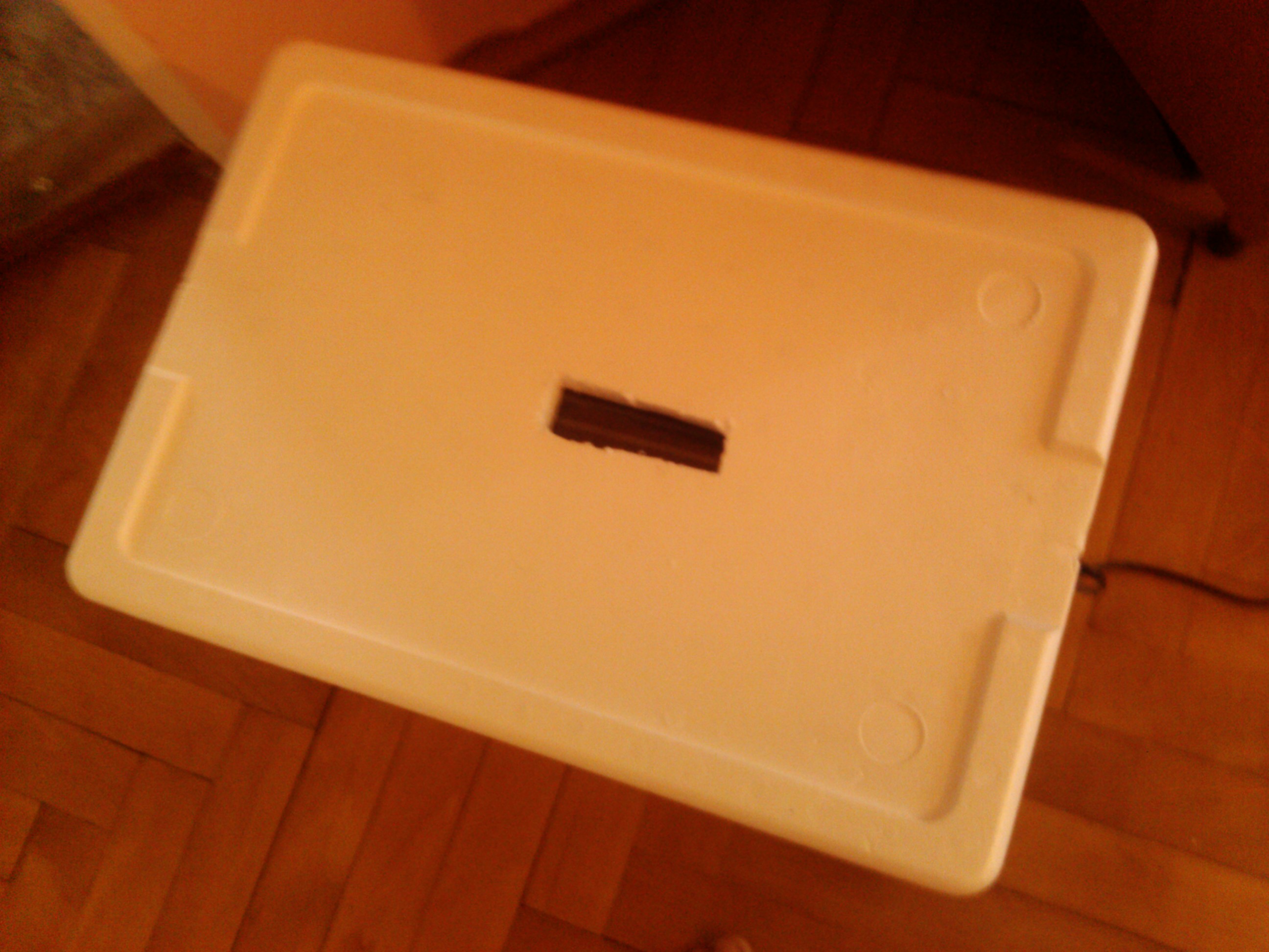 Druhý dotaz se týká ohledně inkubátoru. Ten jsem vyrobil z polystyrénové bedny viz foto. Ve spodní části bedny je asi 2 cm vody a krabičky s vermikulitem. Na víku bedny je přilepená topná folie. Když byl výhřev zapnutý, byly teploty v inkubátoru okolo 41°C tak jsem udělal ve víku otvor tak aby mohlo utíkat teplo, ale nesnižovala se vlhkost. Tak jak je to teď tak při zapnuté topné fólii je v inkubátoru teplota 32°C a 70-90% vlhkost. Vermikulit jsem zatím nikam nevlhčil a doufal jsem že se sám navlhčí tou vlhkostí v inkubátoru ... vermikulit je na omak stále suchý. Dotaz tedy směřuje k tomu, zda vlhkost 90% nevadí a zda mám vermikulit trochu navlhčit rozprašovačem. Plánuji táké zvětšit otvor ve víku tak, abych docílil teploty 28°C ... Teplotu a vlhkost měřím meterologickou stanicí ... mám od kamaráda a snad měří správně.