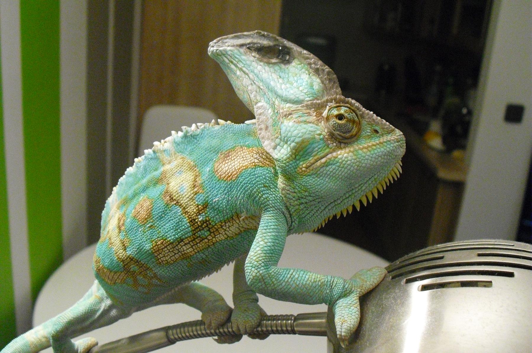 Tak chameleon je už jistě po návštěvě u veterináře, tak jak to vypadá?