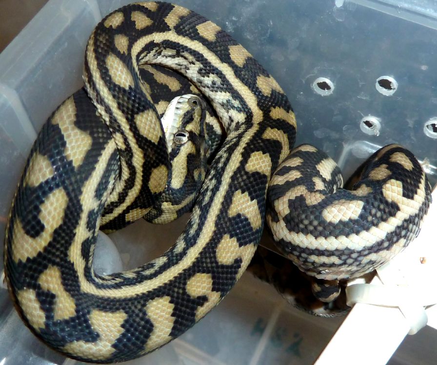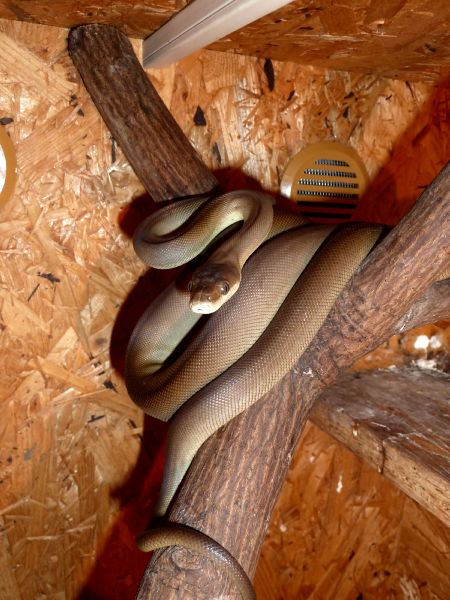 neodolal jsem leiopython (liasis) albertisii gold 0,1 NZ11. Vypadá úplně jinak než goldy co mam doma. Škoda samce, toho mi vyfoukli těsně před nosem. Nevíte někdo plonkovym samci takovýdle formy abych jí dopároval?