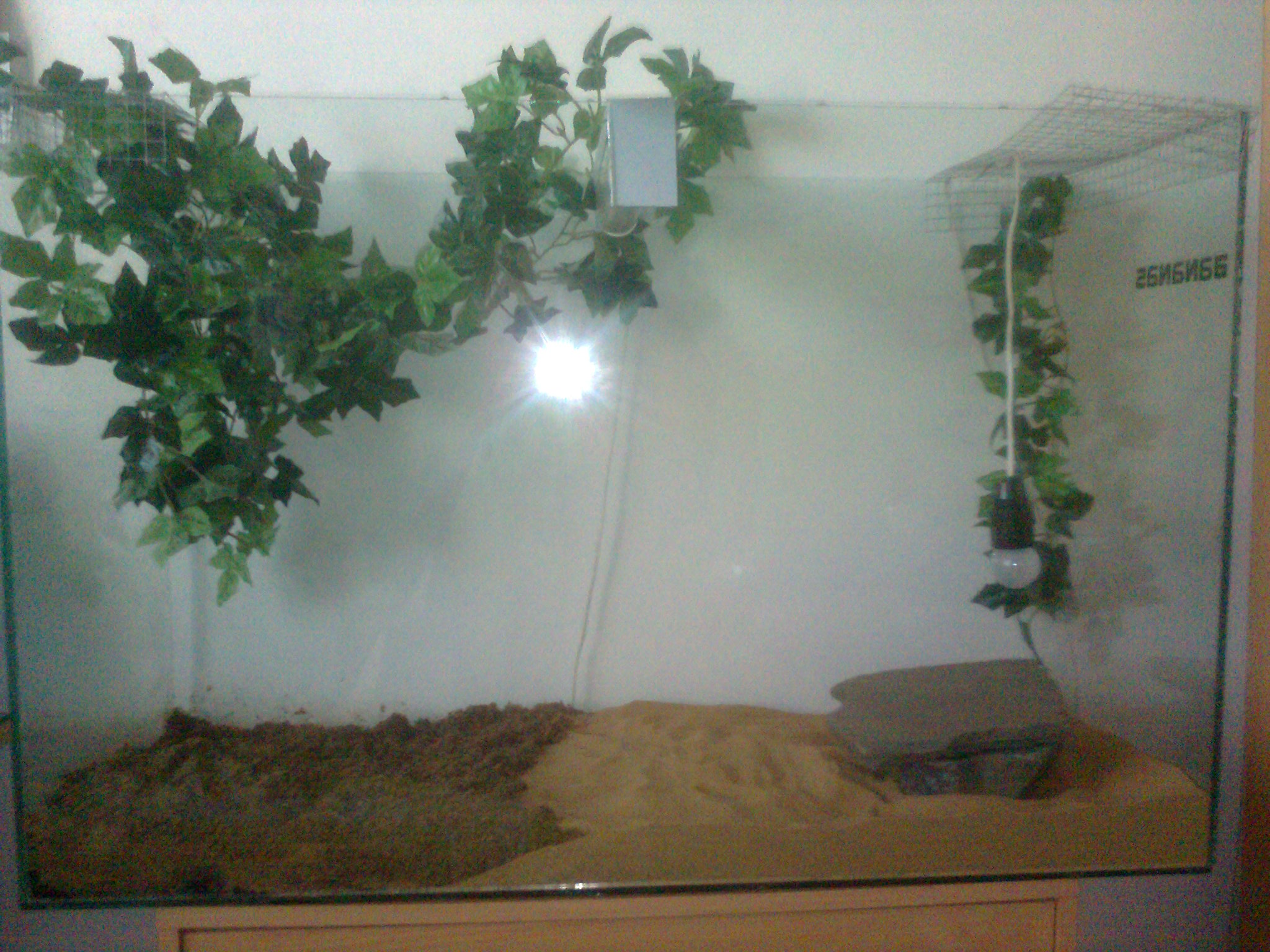 Chtěl bych slyšet jen názor, zakládám terárko na agamu, a jsem v takové fázi jak je na obrázku, uprostřed normální zářivka, vpravo bude vyhřívaná žárovka a ještě chci dodat žárovku s UVB, jinak vpravo obyč. písek, vlevo písek + kokos, umělé rostliny, chci tam ještě dát kameny, a klacky ať má po čem lozit a určitě teploměr, vlhkoměr, a misku s vodou. Díky za komenty.