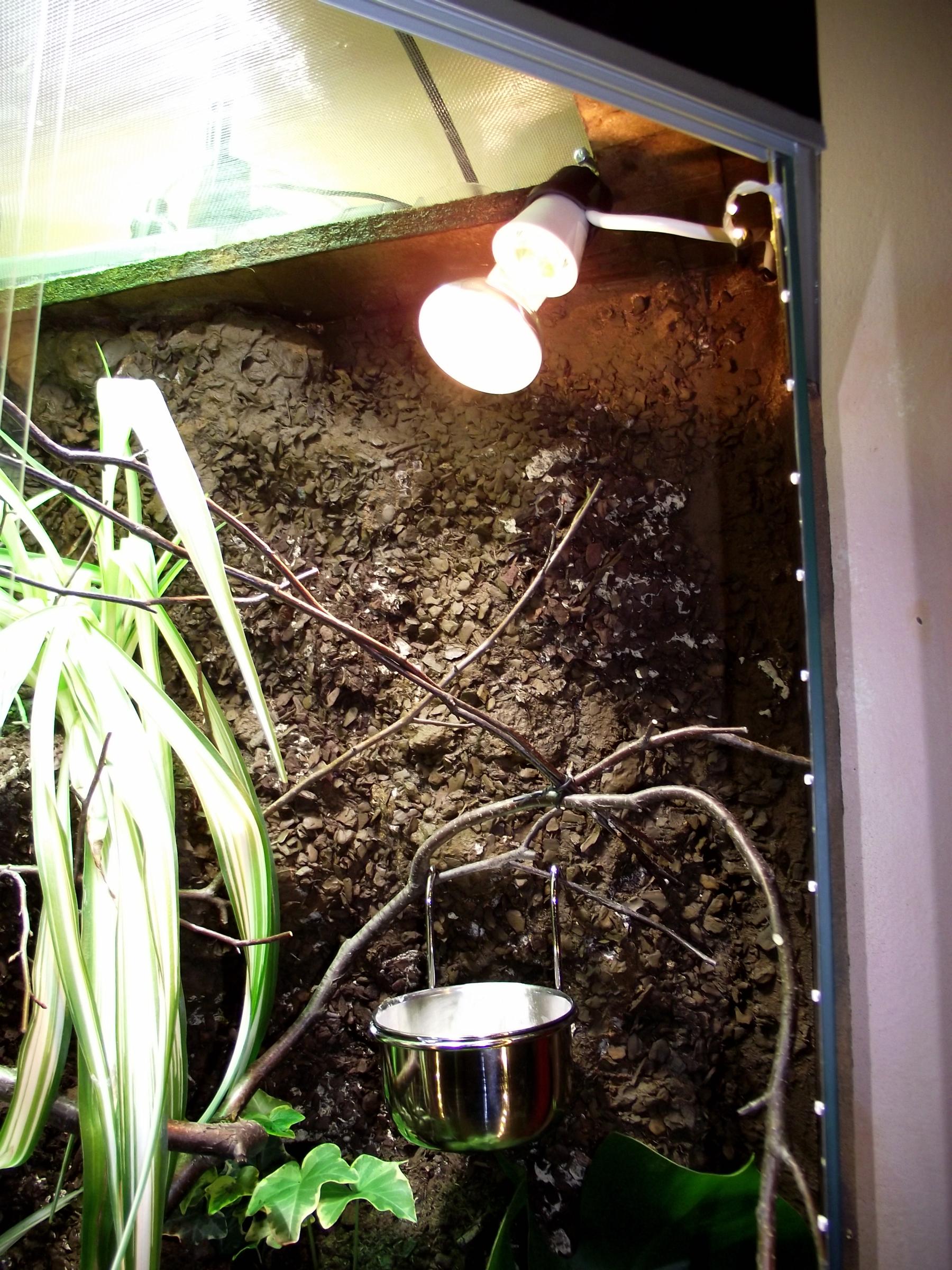 terarko vypada k svetu.. ale... je tam tma.. chtelo by to jeste dosvetlovaci zarivku.. treba sylvanii activa 60cm s reflektorem..tak by to melo byt ok.. a nevim jak takhle maly prcek bude nahanet potravu v terarku.. chtelo by to pro zacatek neco mensiho..ale na to je asi pozde..