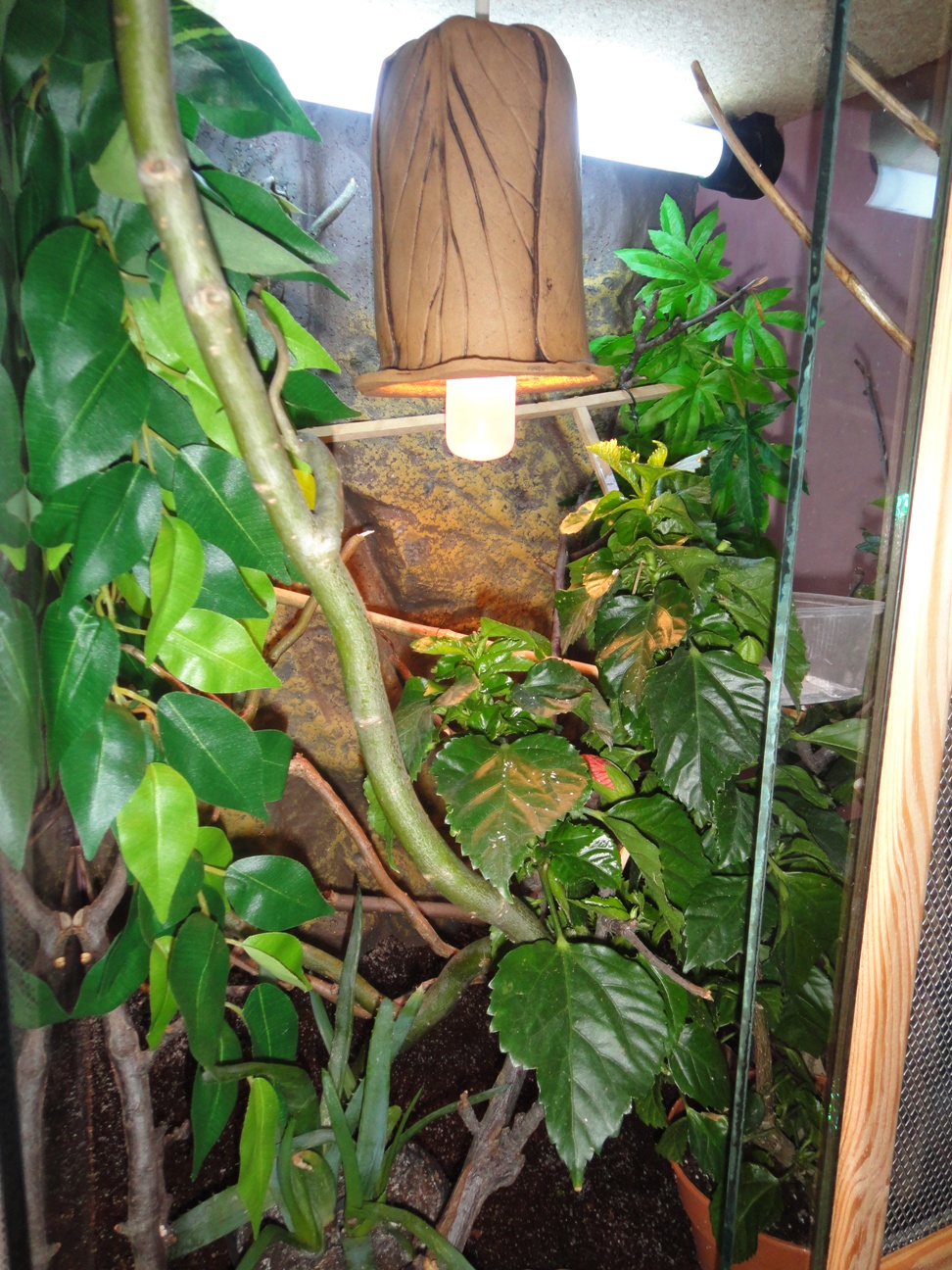 urcite pridej vetve.. udelaj vetrani pres celej strop.. vyhrevnou zarovku dej nad terarko a udelej vyhrevnou vetev na nejakejch 38stupnu. vyndej to stinitko co je na kompaktu.. je to uplne k nicemu.. a naopak nevyzaruje tolik uvb do prostoru.