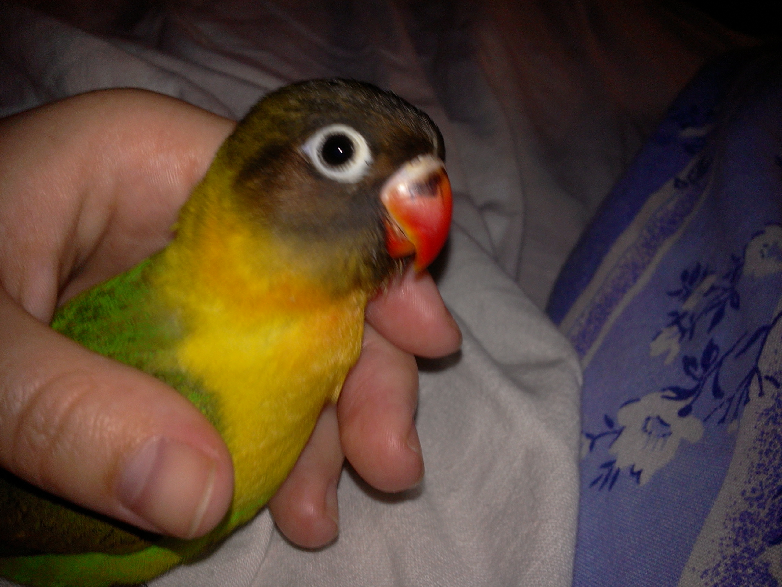 Je hodně aktivní, létá dobře, načepýřená byla pouze po tom sneseném vajíčku, to měla i svěšená křidýlka, dostala ale hned vápník a vitamíny a za pár dní se z toho vylízala. Teď přepéřuje. Krmím směsí zrní (proso, oves, slunečnice), do toho jsem jí teď přidala uhlí pro ptáky a vitamínová zrníčka. Má i k dispozici sépijovku a ptačí písek s gritem (ten ale nežere). Jinak jí ještě dávám prosové klásky a vitamínové tyčky, občas dostane moučného červa. Ještě teď po té snášce dostává vitamíny do vody. Ovoce, zeleninu ani zelené mi nežere. Někdy jí ho nabídku, ale vždy to zůstane nedotčené. Nevím, ale jak s tím rozborem trusu. Normálně ho posílám do Prahy na veterinární kliniku, ale teď v zimě by se asi vzorek cestou znehodnotil. Stravu má pořád stejnou, koupila jsem jí ještě jako ptáče na dokrmování. Co začala žrát sama má pořád to samé.