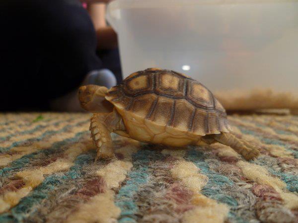 To jako že želva bude bydlet v krabici od bot? A s výběhem na koberci?