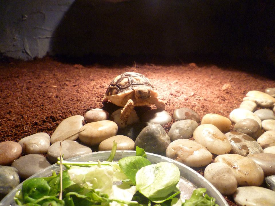 Zdravím Vás, také máme doma želvu ostruhatou, nyní jí je cca rok a půl (a už má téměř 1 kg). Máme jí téměř od vylíhnutí. Svítíme jí obyč. 60w žárovkou a k ní máme UV zářivku. Želva krásně roste a má pevný krunýř, takže se domnívám, že je to takto dostatečné. Většinu dne tráví pod žárovkou a také pospává