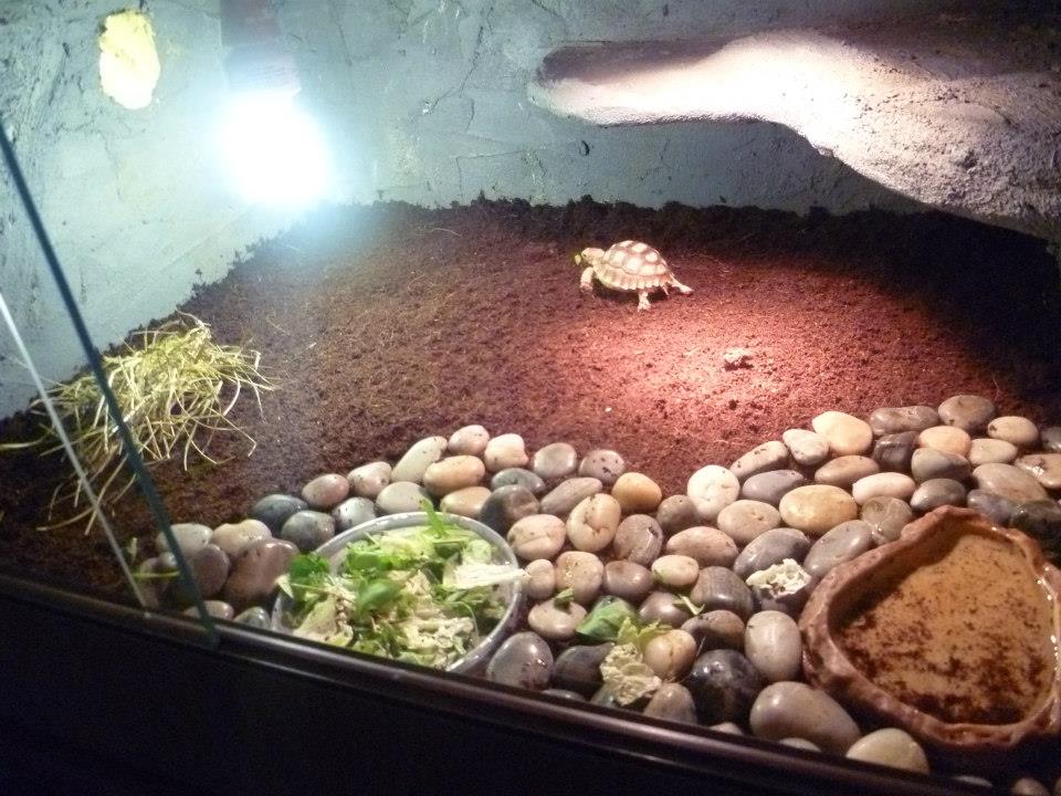 no my jsme čekali na terárium ale řekli nám že jim stačí zatím box a že na tuto stranu už dlouho nepojede. Jak nám řekli tak jsme udělali - vlhké hobliny,seno,listy pampelišky,polníček ,trocha rukoli,zkoušeli jsme i najemno mrkvičku ale tu a seno zatím nechce. Máme ji tedy zatím v boxu 80cm a navrchu je pletivo takže větrání je celý vrch. má tam výhřevnou žárovku a ta právě hřeje na tolik stupňů,UVB repti Glo 5.0 ale teď jsme se dočetli že je uplně naprd,tak nám byla doporučena žarovka uvb silvania myslím že se jmenuje uvb bud zářivka nebo přímo žárovka ktera vydava teolo,světlo i ivb a uva v jednom.