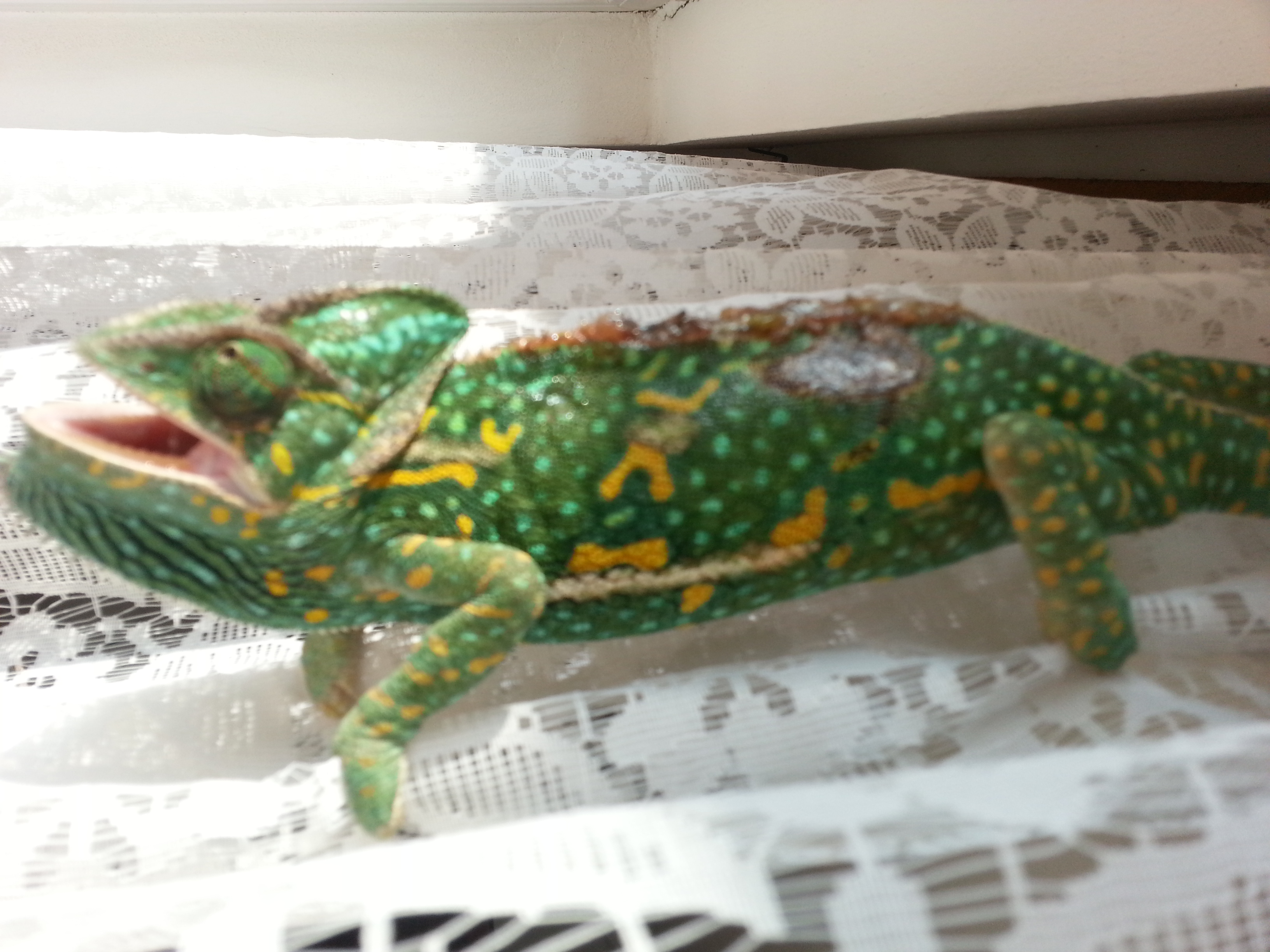 Tohle určitě není od kousnutí druhého chameleona... Chtělo by to lepší fotku ale řekl bych, že je to spálené...