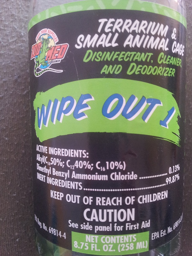 chci se jen ze zvědavosti zeptat čím tak čistíte terária? Právě jsem teď svoje 3 terária vyčistila a zdezinfikovala akorát se teď suší a vyvětrávají. Na omytí používám Savo rozředěné ve vodě a pak ještě terária vystříkám dezinfekcí Wipe Out 1 (viz. foto. Používáte ještě něco jiného? Dříve se mi stalo, že jsem v teráriu u agam vousatých zespodu topného kamene kde je vylitý betonem viděla v těch pórech běhat takový malý muňky což mě vyděsilo a na aukru sehnala ten sprej Wipe Out. Od té doby nic. Agamy jsou zdravý. Terária čistím 1x týdně pořádně jinak běžně od exkrementů denně dle potřeby. Každopádně bych se ráda dověděla i o jiných čistících prostředcích.