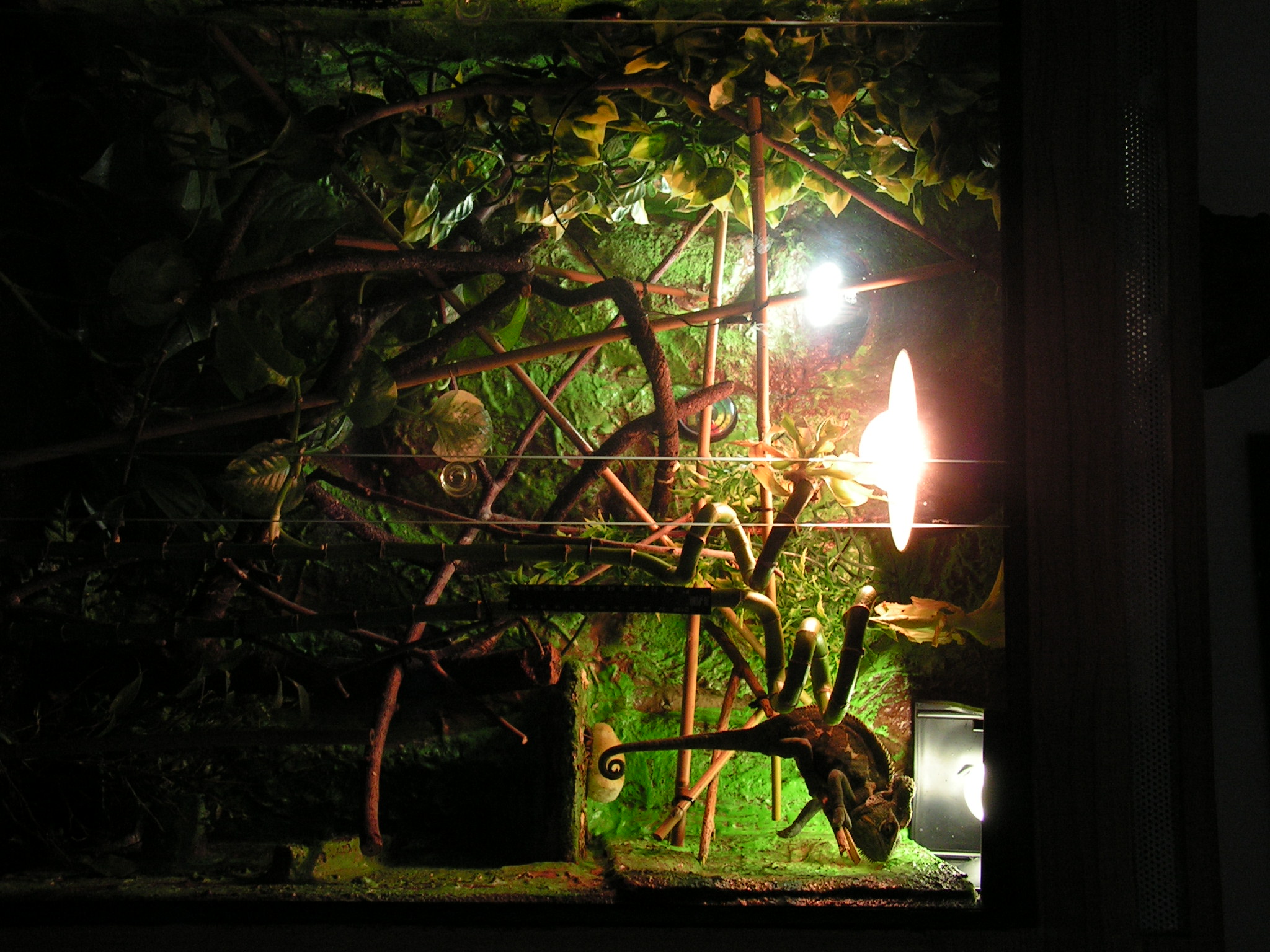Tak vapniku mel podle me dost,helmu mel takovou co jsem ho dostal ze zverimexu,jen tam nebyla ta boule.kazdy den sezral nejmene jenoho cvrcka obalenyho v roboranu h + drceny kalcium.To zcernani a nasledna smrt nastala ze dne na den.Zadny priznaky nemel.Jediny co jsem v poslednim mesici zmenil byl roboran za reptivite.Jinak podminky porad stejny.Mel jsem ho 9 mesicu a nevim jak byl stary pri koupi,ja ho dostal.U me pravidelne svlekal,zral sice ne nijak zavratne,ale zral.Mel den kdy sned 10 kousku,jindy jednoho.Pit dostaval kapatkem taky ruzne,nekdy pil nekdy nechtel.Kazdopadne i do vody jsem obcas pridal kalcium.Mel zarovku reptiglo 10.0,jednu 70W na vyhrev a jednu led zarovku na svetlo.Podle veterinare se mohlo jednat o previtaminovani.Pokud dostaval roborah,byl v pohode,ten reptivite asi byl silnej.Nevim jiny d3 jsem mu nedaval.Ale podle toho jak se mu motaly nohy a neudrzel se na vetvi to pry bylo jasny predavkovani.Porovnej fotky tole je 13.9 a tohle o dva a pul mesice dyl