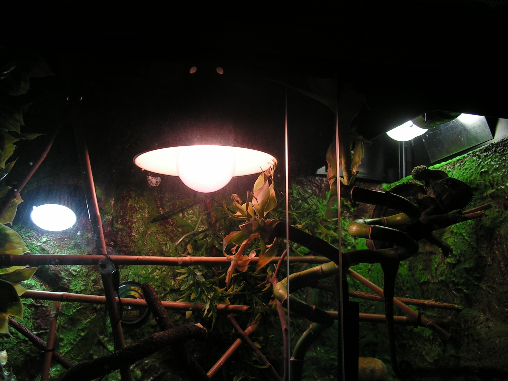 Muj chameleon od vcera ma cernou barvu,chvilema se jakoby v kreci cukne,zadni nohy mu vidi z vetvi a nemumi se jimi drzet ma je sevrene.Obcas z vetvi spadne a lezi na boku.ja ho zvednu,dam na vetev a on se chyti pouze prednima ale s velikymi obtizemi.Ted uz neni cerny,ale ma normalni barvu,ale uz nema ani silu se drzet a kouka mu z huby spicka jazyku.Jak se k nemu vsak priblizim snazi se reagovat.Bohuzel u nas nikde neni o vikendu zverolekar takze co to asi muze byt.Misto vysvetlovani podminek radsi davam fotku je to foceny vcera dnesk je na tom hur.Jinak daval jsem mu vitaminy reptivite a vapnik denne.