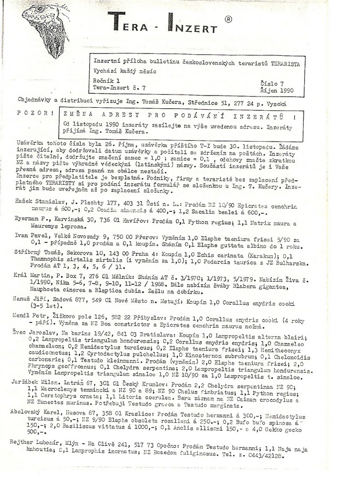 vycházela různá inzertní periodika a ceníky: