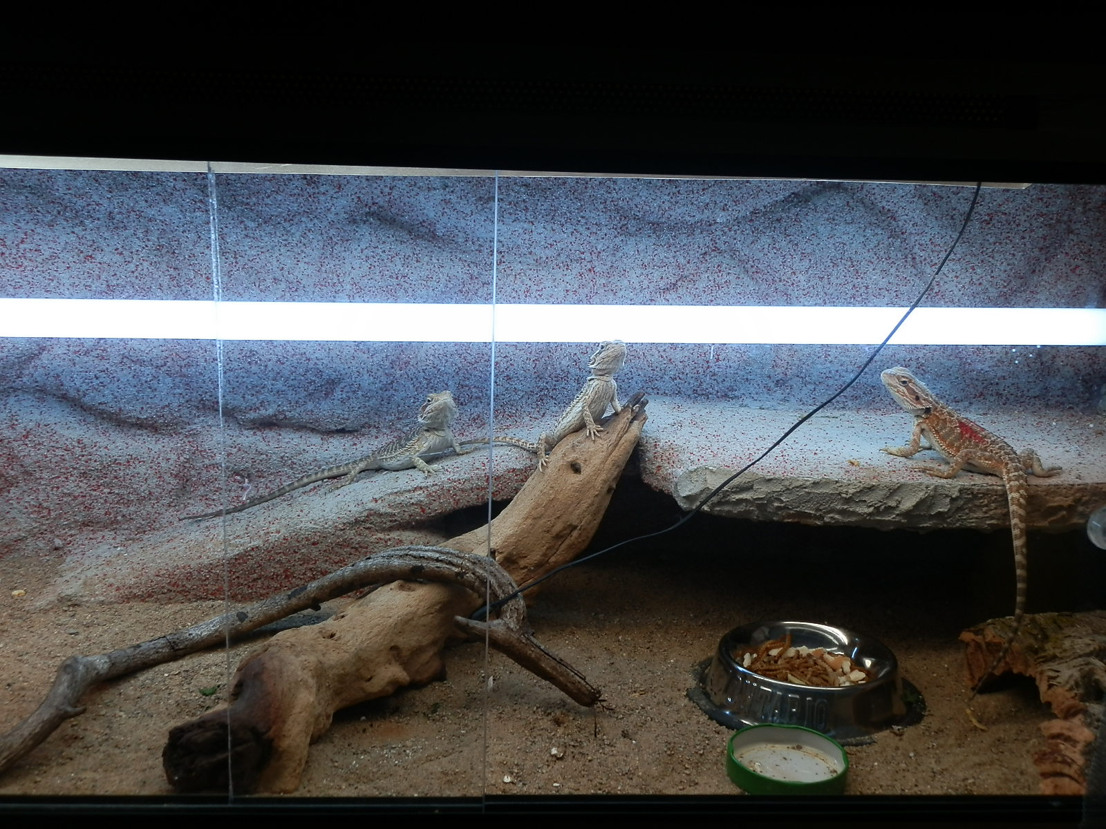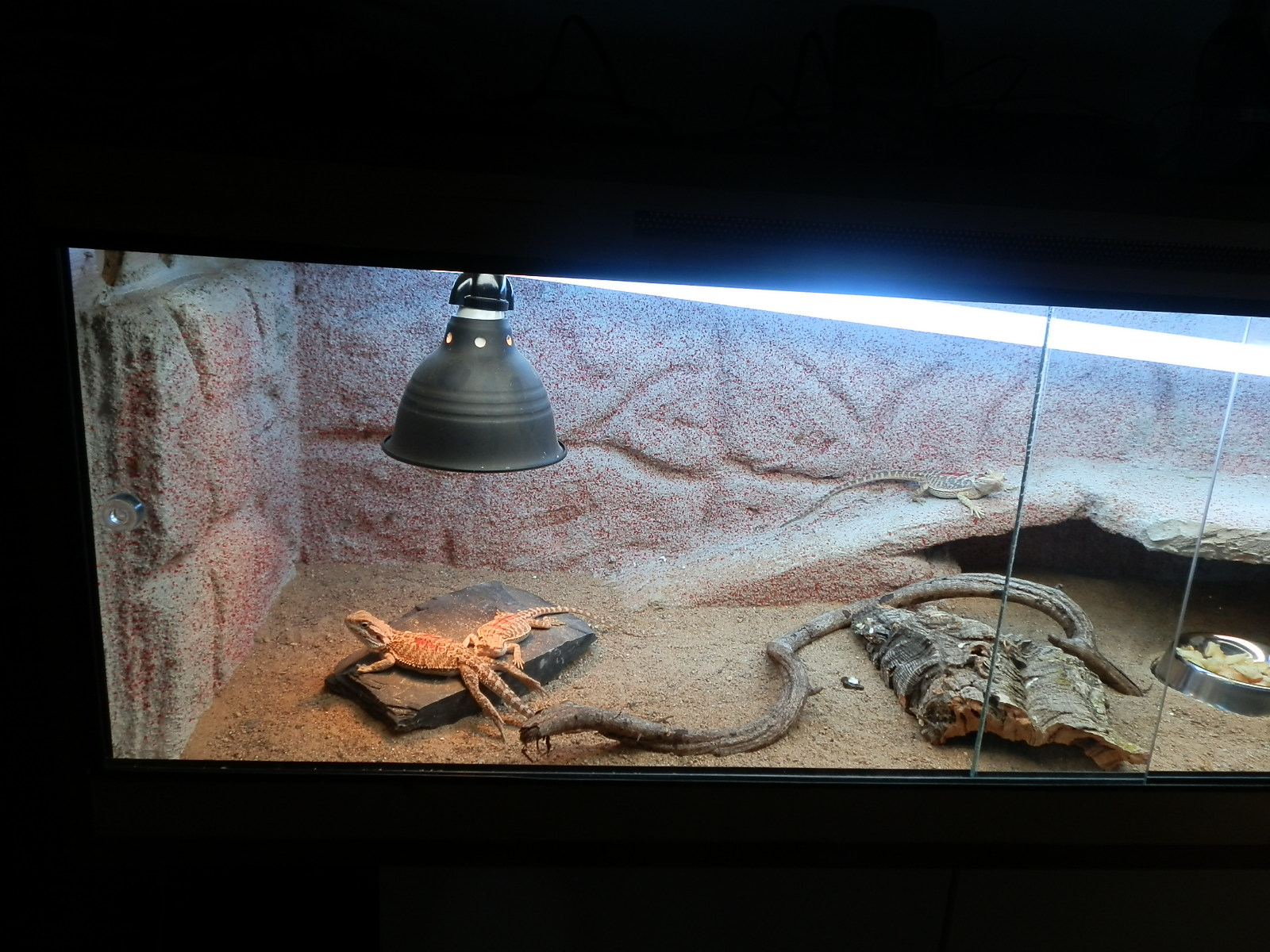 .Zkousel jsem jabko,nechteli,maji ho v misce nastrouhany a jestli si zobli nevim tolik je nesleduju.Tady davam fotku ty zarivky jak se sluni povetsinu dne.Tu vybojku s tim predradnikem stejne nakonec koupim,ale asi az na jare ted by me doma 2000,- neprosli tohle terarko me stalo dohromady kolem 4500,-.Ja o tom premyslel,ale psali ze je potreba mit aspom 70 cm vysku atd tak jsem koupil predradnik na zarivky s cyklovacem.Jinak tu zarivko RG 10.0 si snizim jak chci a opet vytahnu,takze jsou od ni i 2 cm kdyz chteji coz si myslim na to ze je uplne nova by mohlo stacit aspon do jara ne.