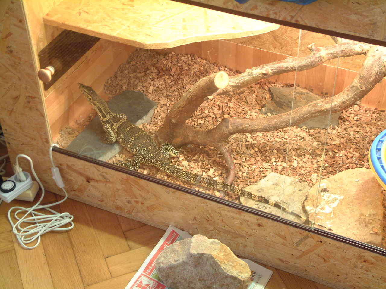 Já mam dno současného (dočasného) tera vylepené linoleen, takže s OSB by ta voda neměla přijít moc do styku, jinak OSB mam ještě natřené 3 vrstvami laku (značku si nepamatuji, protože jsem ho kupoval na množství ne v plechovce), momentálně jsem to vyřešil tím způsobem, že jsem prostě štěpky stáhl z prostoru kamenů a bazénku, ale taky mám asi ne úplně ideální bazének, protože je dost nízkej a musím dávat dost vody, aby se varan ponořil, ale tento týden budu kupovat nový, tak snad to bude lepší.