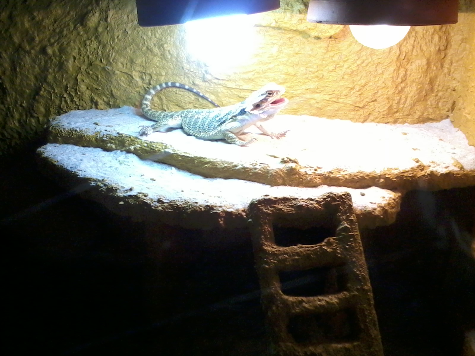 UV by melo byt tam kde se zvire s oblibou zdrzuje, coz je obvykle misto kam sviti vyhrevna zarovka - kde se "sluni". Proto je dobre dat to pobliz. Na fotce vidim vyhrevnou zarovku "klasickou" - dal bych tam spis bodovou aby pod ni bylo dostatecne teplo (40-45°C, v prostoru kolem 30) a taky nevidim zadne prosvetleni prostoru, to je taky dulezite.