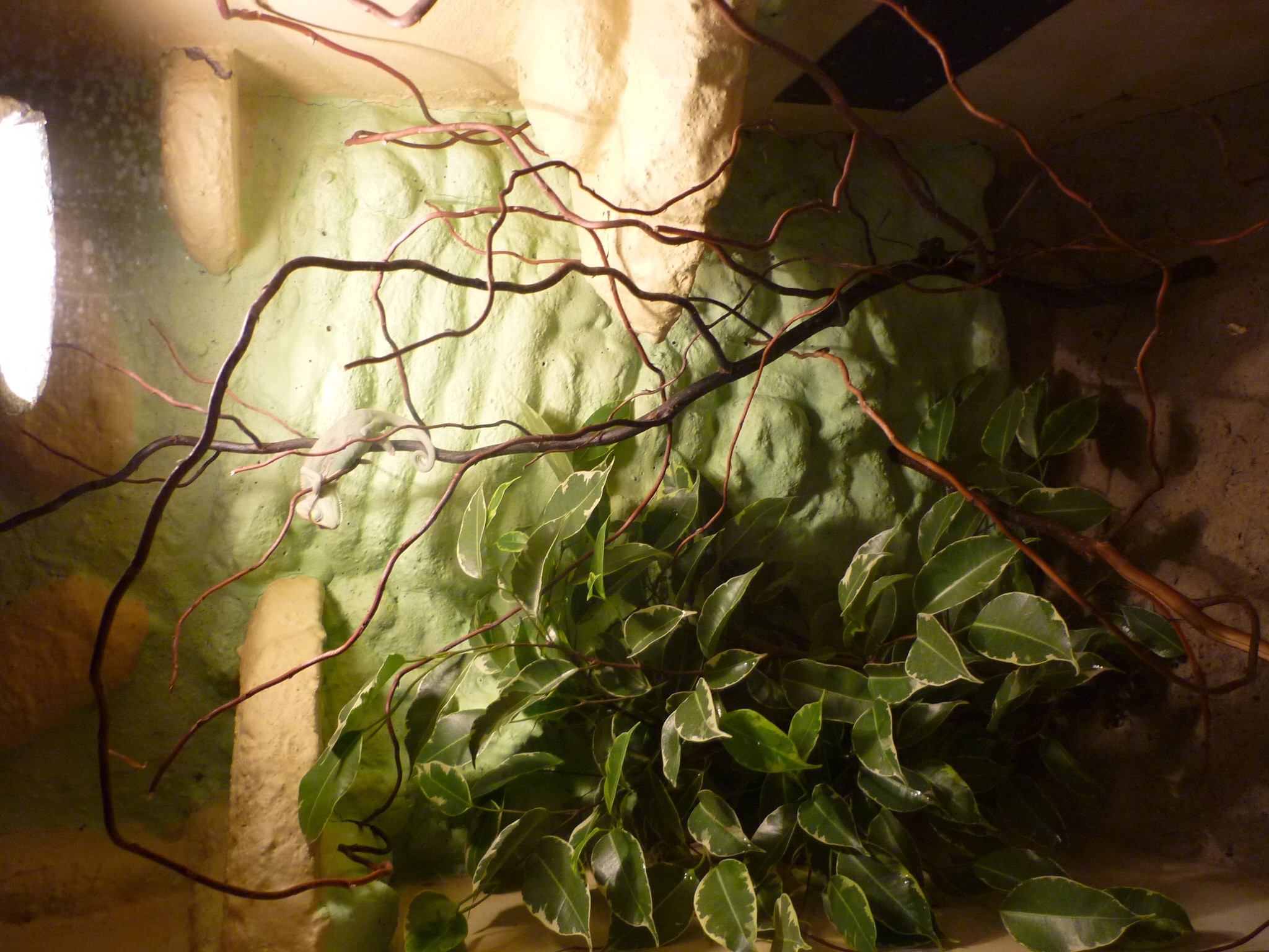 Mám doma už 3 týdny chameleona,zatím jsem mu ještě nezačal svítit UVB .posílám nějaké fotky chameleona a teraria jestli dělám všechno dobře.A chtěl bych se zeptat jestli je v pořádku ta poloha chamíka na větvičce,občas tak poleháva ale někdy i docela chodí.Jinak žere v pohodě ,snad i pije .jsou tu i fotky terarka.Teplota terarka je ve středu 28,ve spod kolem 22 a pod zarovkou kolem 33.Vitamíny dávám od chovatele a ještě jsem nadrtil sepiovou kost a přidávám k tomu dvakrát týdně.Díky za rady.