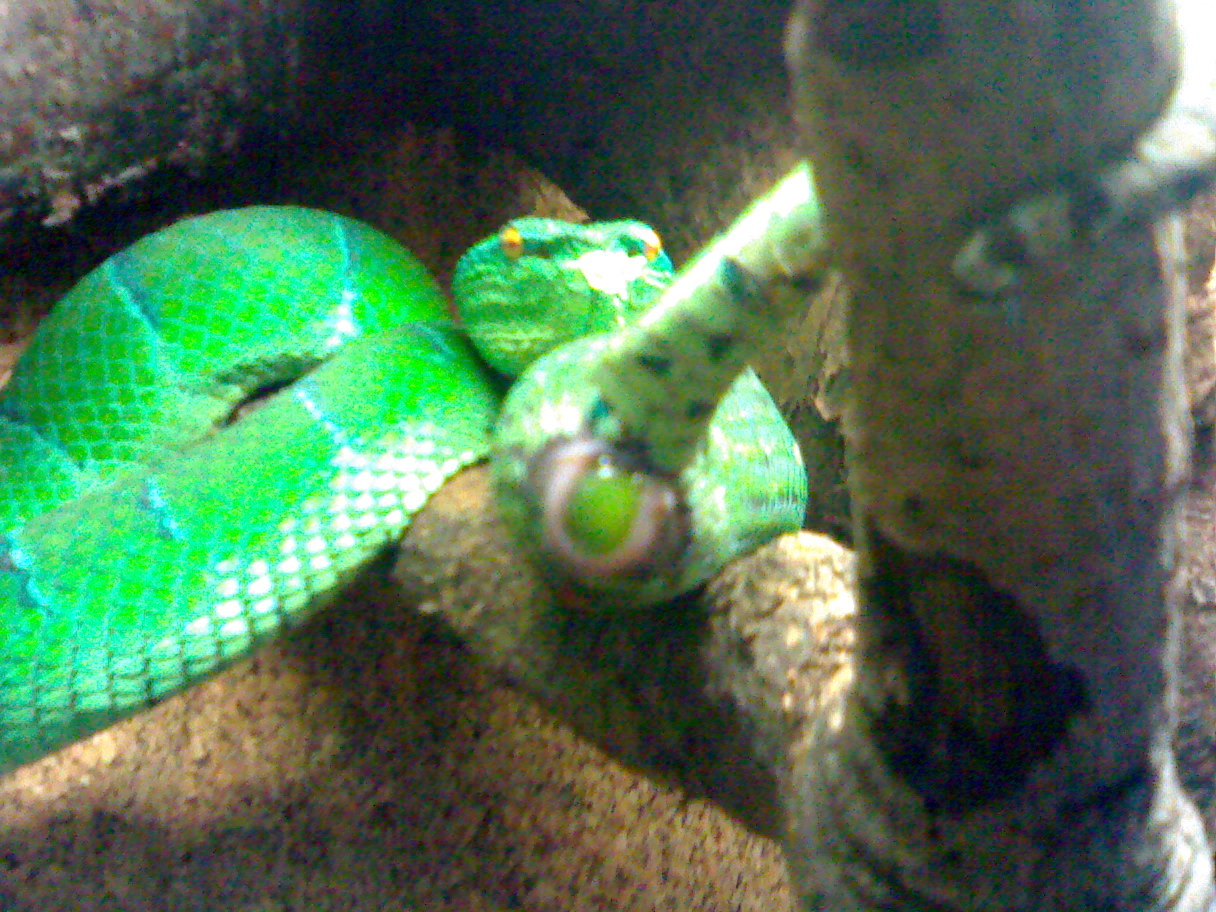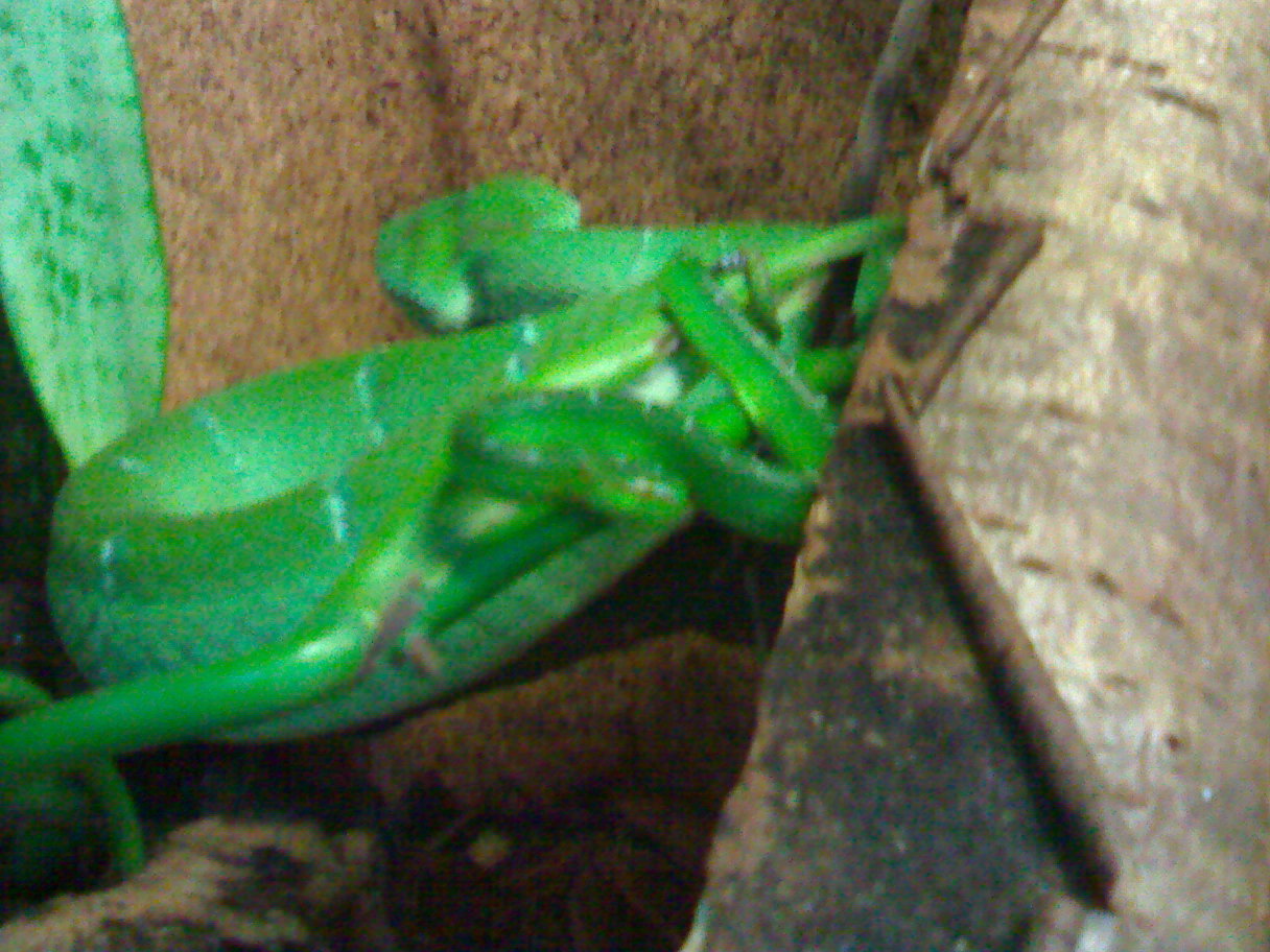 občas se mi ale nějací stromáci/trimáči v terárkách objevili (šlegové, ted aktuálně Prot.jerd.xanthomelas) a co od starších znalců člověk na exkurzích u terárek vykouká, na srazech KKT nebo u píva na živé exotice vyslechne, se mi všechny druhy doposud dařili (v případě mládat zatím v podobě udržení naživu - odchovy zatím žádné) v dost podobných podmínkách: jako substrát rašeliník (pod nim třeba ještě noviny - aby vše rychle vyschlo), nějaká větší miska s vodou (lokálně zvýšená vlhkost) a minimální teplo (řeším 15 wat žárovkou), celej strop větračka a hadi na žrádlo co jim chutná - pokud jde hole, jinak hold gekon - krmim málo - dva týdny jsou úplně ideální doba mezi sousty, v řadě zvláštních případů a u importů bych čekal jako vážný problém také stres, který může vyvolat řetezovou reakci metabolických problémů či namnožení patogenních parazitů, které mají plazy běžně v trávicím traktu či jinde - u stromových věcí bych řekl i častěji než u terestrickejch..., zatím po všech terárkoách v současnosti jsem zahlédl subann. i wágleří samice, opět s těmi samci to na mne působí jako alfa omega