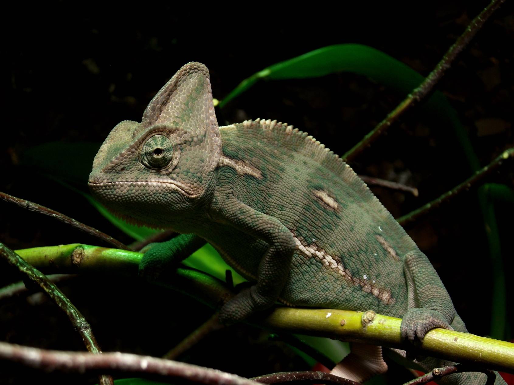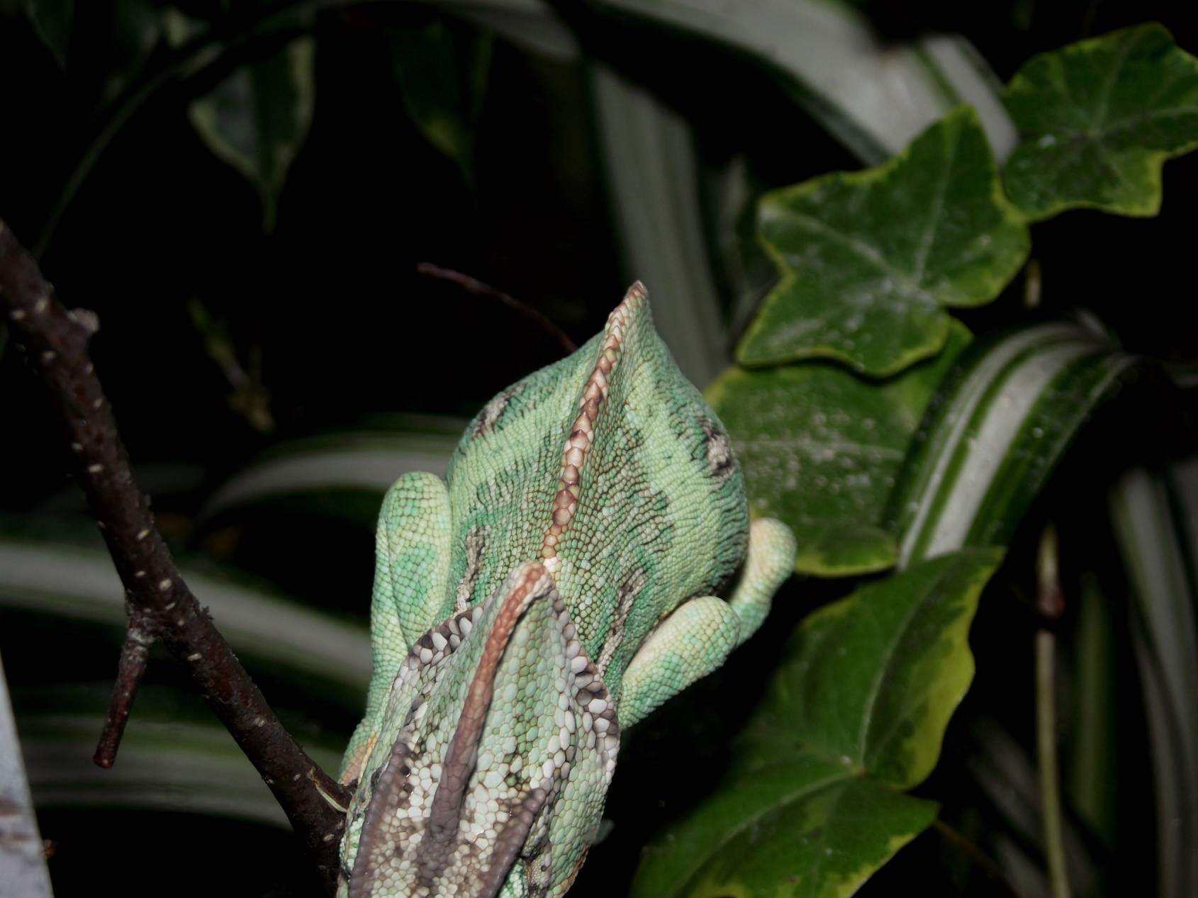 všimnul jsem si trochu nemilé věci u svého chameleona - má nemá rovně hřbetní výrustky. Je na nich trošku vidět "vlnka", nicméně nevšiml jsem si, že by měl nějak křivou páteř nebo cokoli. Takže, tak pro jistotu zde vkládám dotaz. Viz fotografie (na 9962 je to trošku vidět - lepší bohužel neudělám, protože ho musím fotit když spí