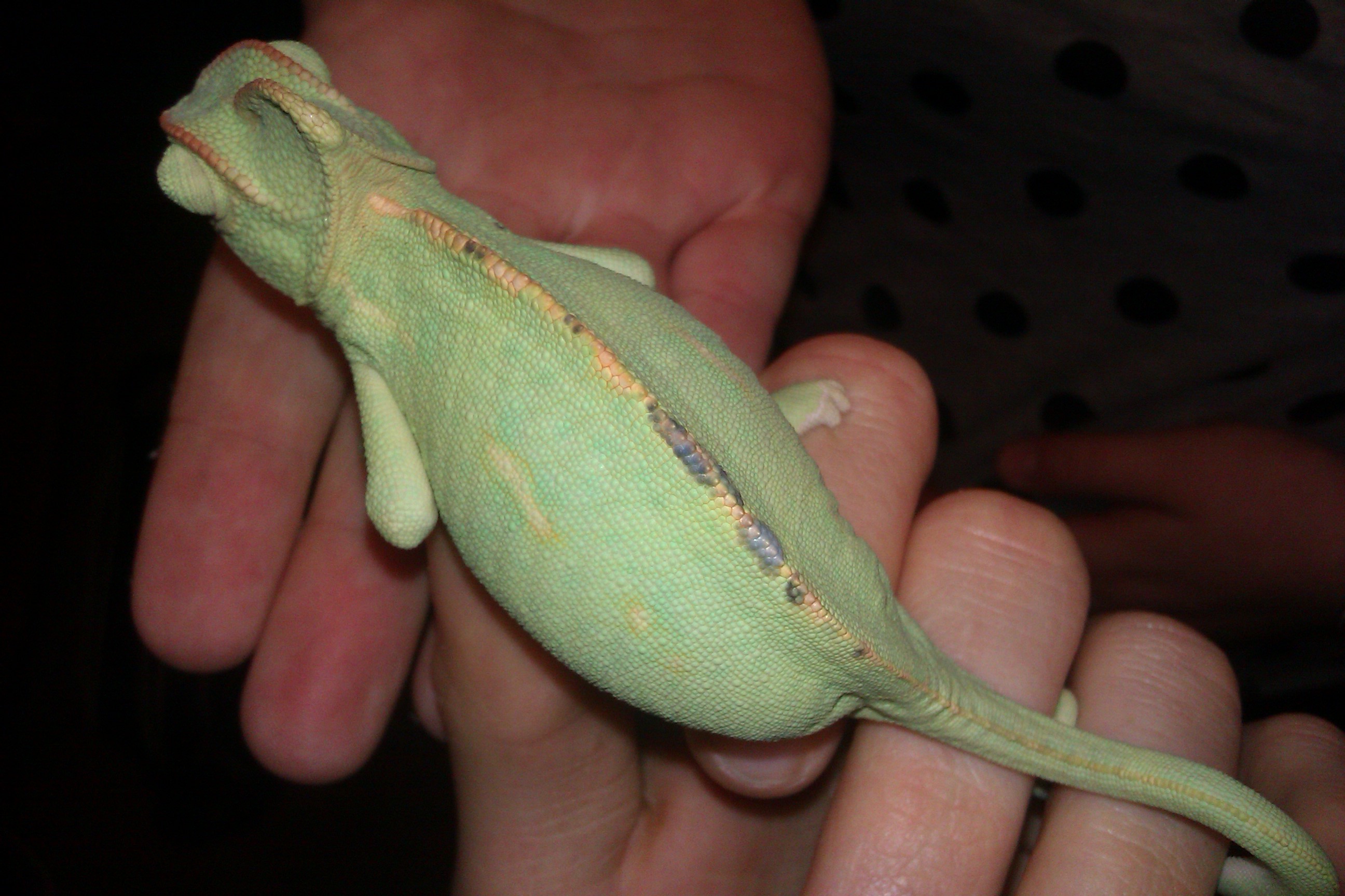 Chameleoní slečně se na páteři objevily tmavé skvrny a jedna skvrna na boční straně těla. Má zhruba 3 měsíce