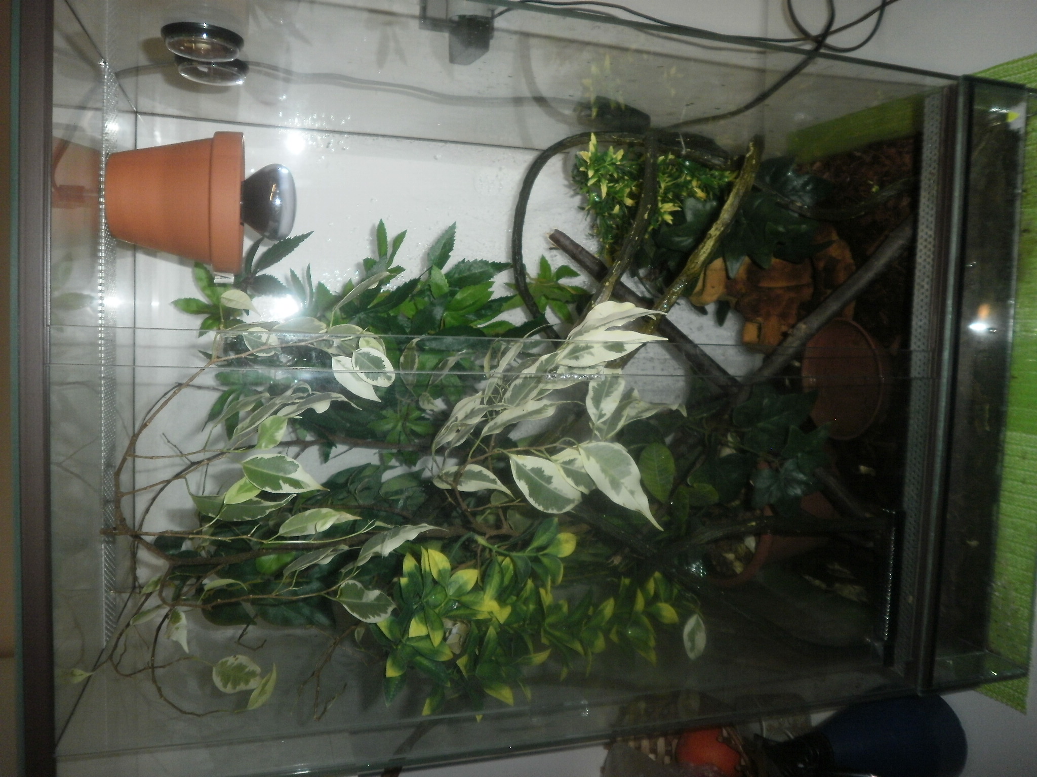 Terárko je 45š,70d,35hl.Vlhkost vzduchu bývá 55 až 60-každý den kropím terárko.