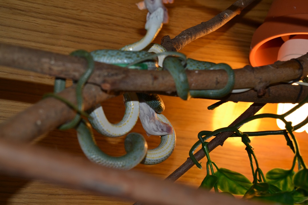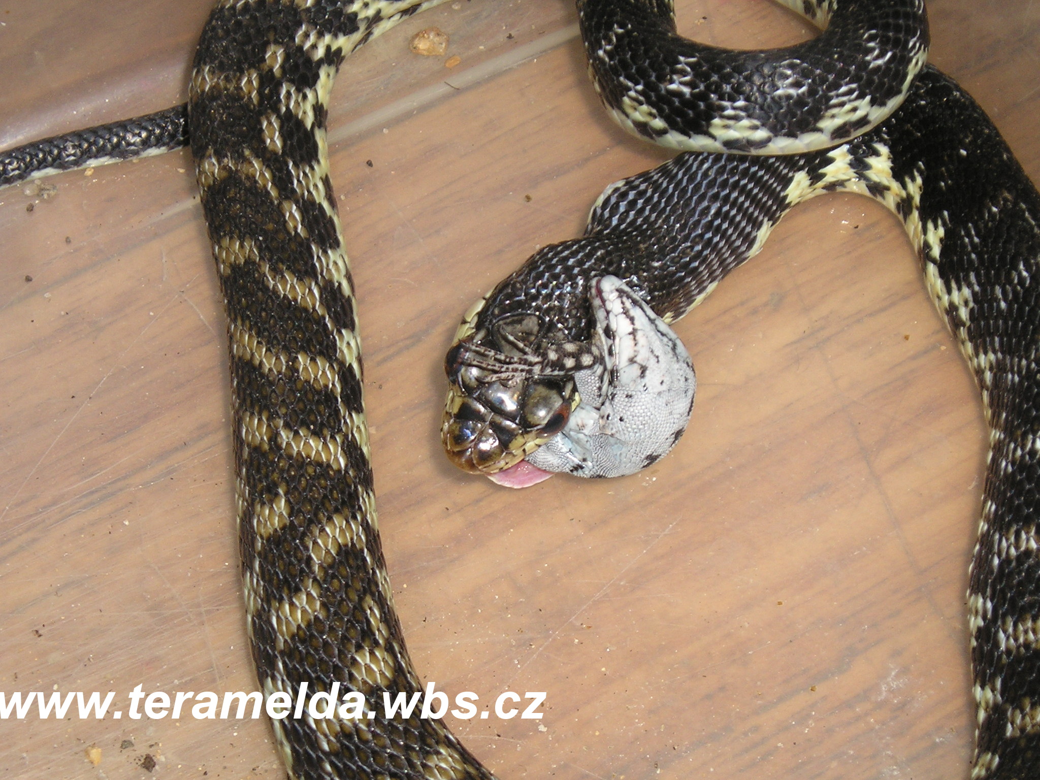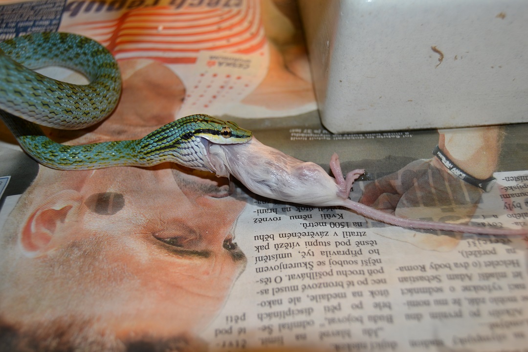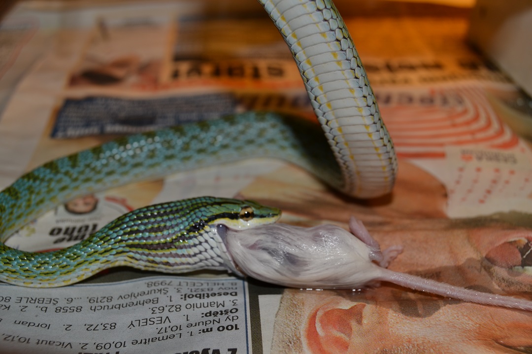 Tak, to poznám, mal som rovnako "veľké" mláďatá Nerodia fasciata. Ale tým aspoň nerobí problém žrať samým no :)