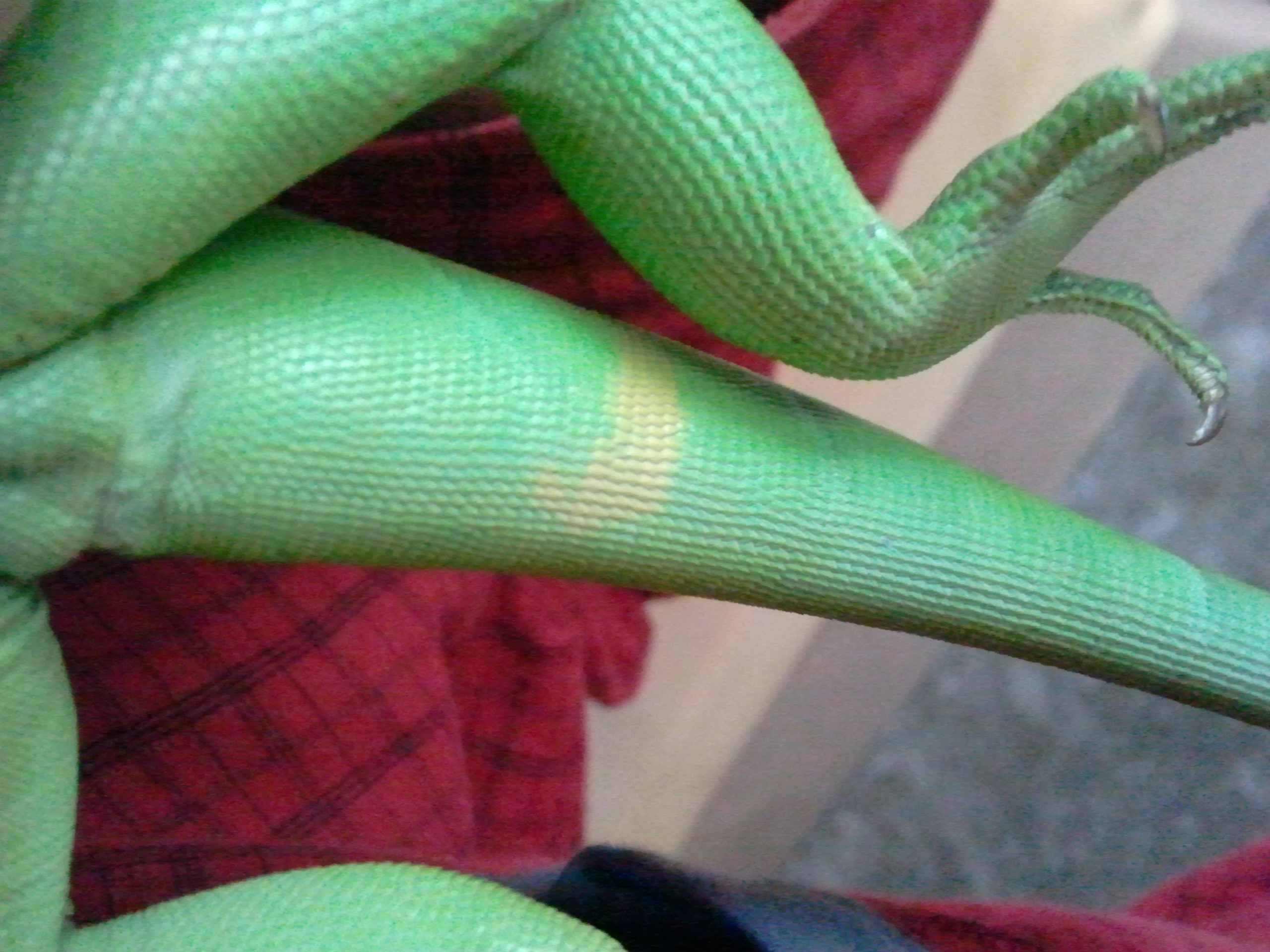 Dneska ráno jsem mu našel na těle a ocase žluté skvrny tak raději posílám ty fotky.