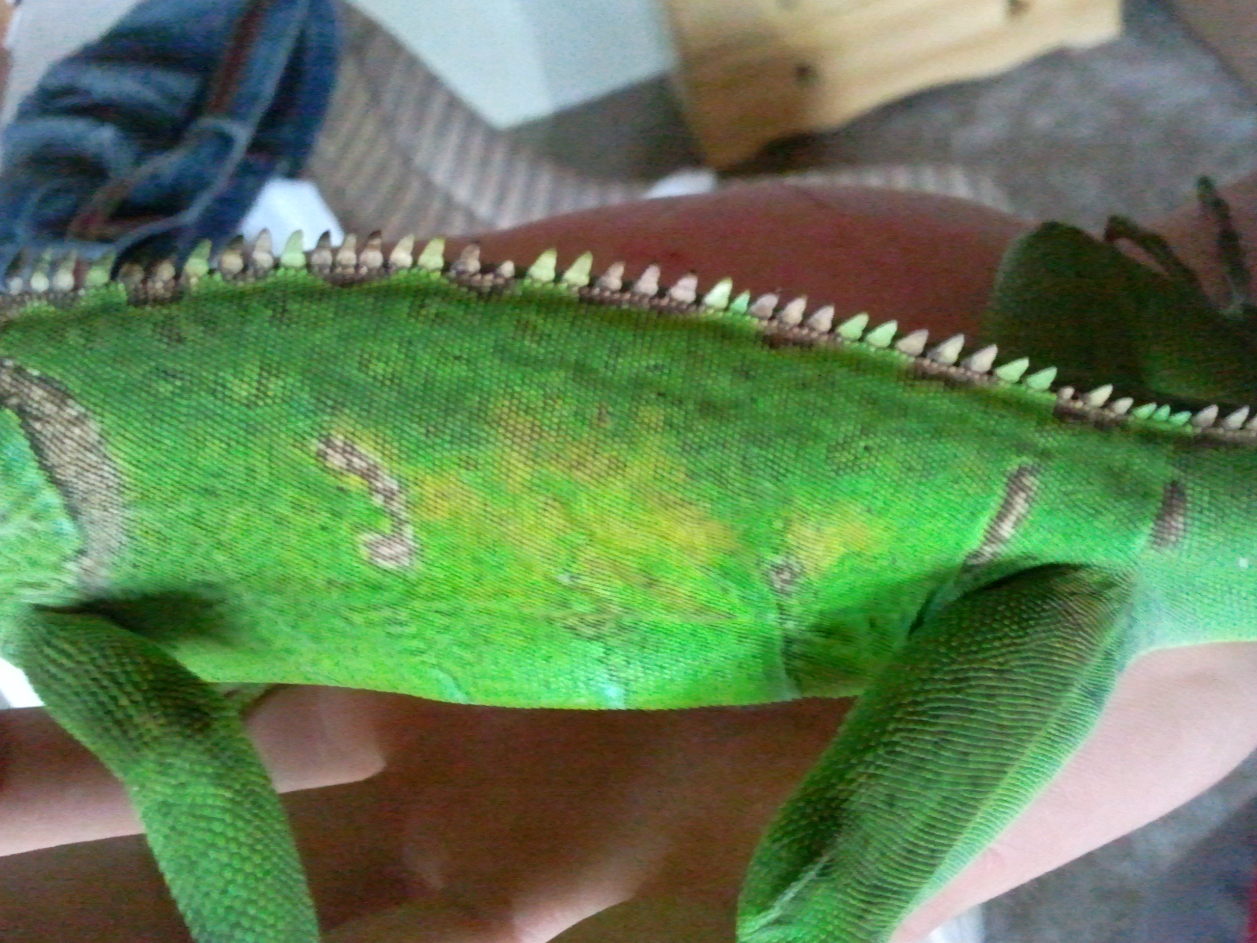 Zdravím, mám tu vybojku SunLux UV 70W a chtěl bych se zeptat jestli je normální, že se Leguanovi udělají takové slabě černé fleky po těle i ocase, když pod ní leží. Mám jí cca 35 cm od Leguana aby tam měl teplotu těch 35 až 38 stupňů. Jinak žere a je aktivní jak má. Děkuji za odpověď