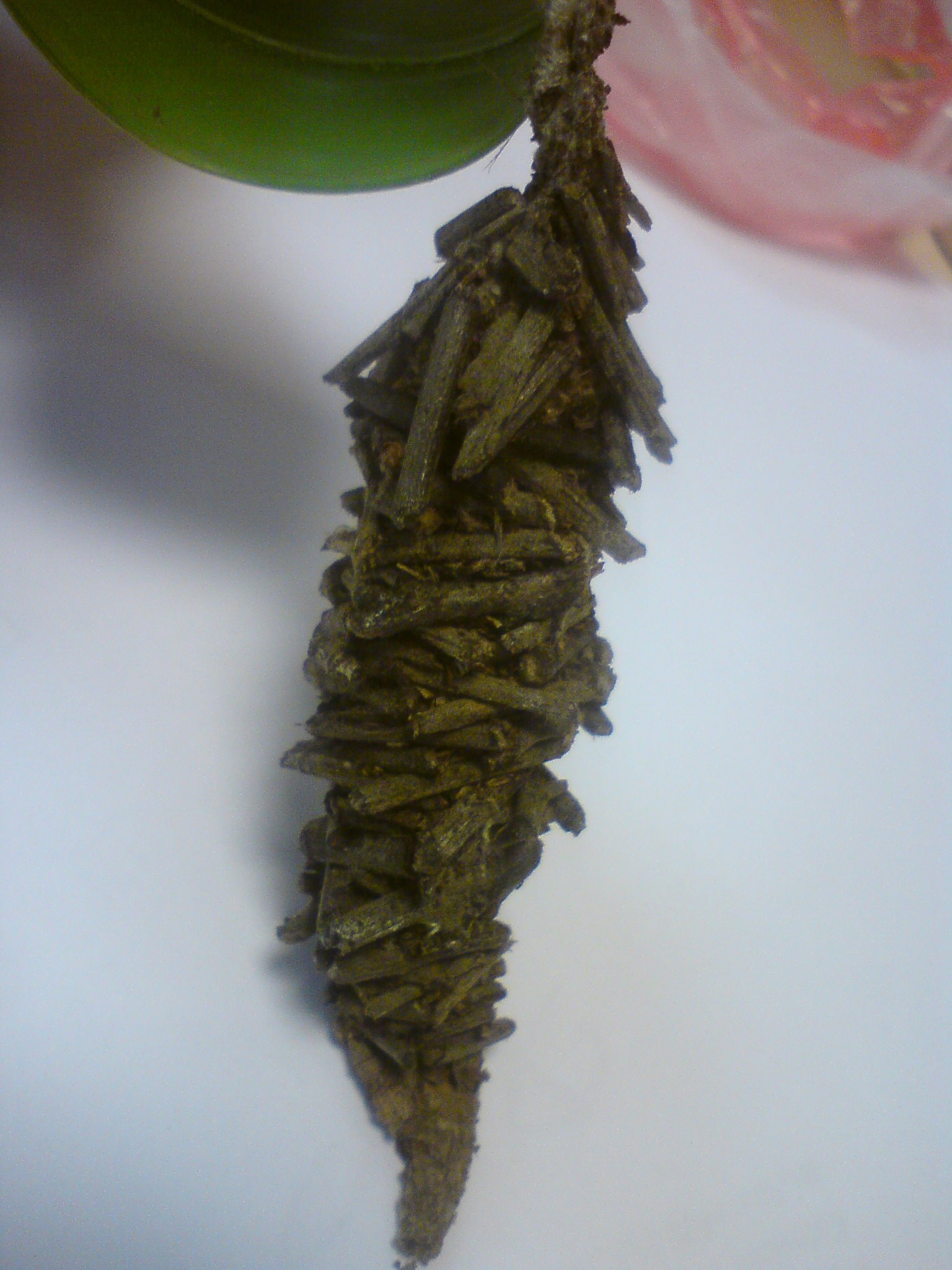 to je zámotek, ve kterém žije housenka nočního motýla vakonoše. Pokud se to pohybuje, tak je v tom housenka, pokud ne, tak je to prázdné nebo je tam kukla.