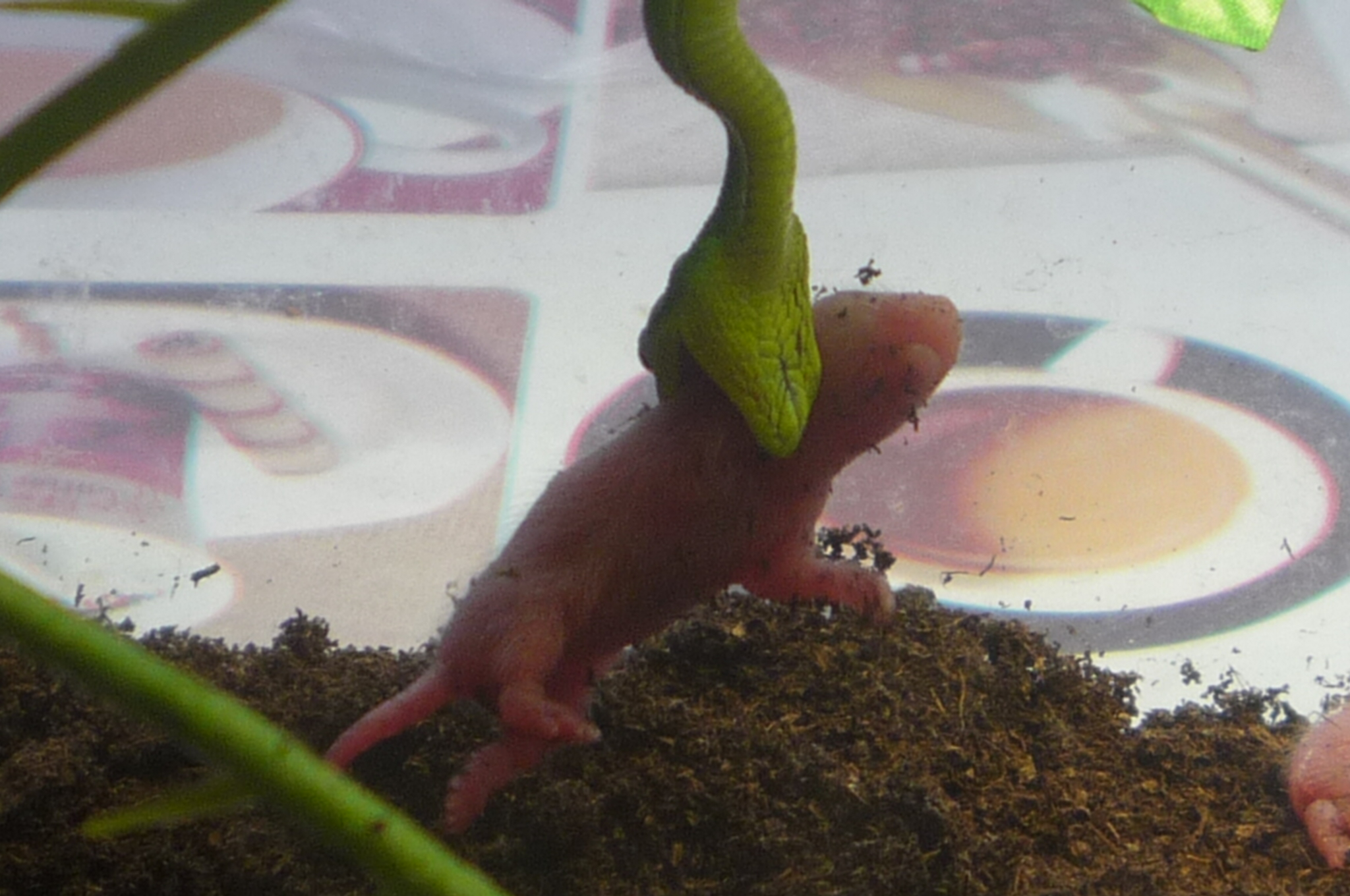 snažíme se jí krmit normálně, ale když dlouho nežere tak do ní nějaké holátko nacpeme. Moc jí to samostatné žraní nejde, občas se jí podaří nějaké zakousnout ale to je málokdy tak do ní občas nějaké nasoukáme když už dlouho nežere. Taky je její kolega, který je o měsíc mladší už dvojnásobný jelikož mu apetit nechybí. což vzhledem k tomu že mají úplně stejné podmínky vyřazuje z možných problémů vliv okolí. snad se chytne časem sama úplně... doufá