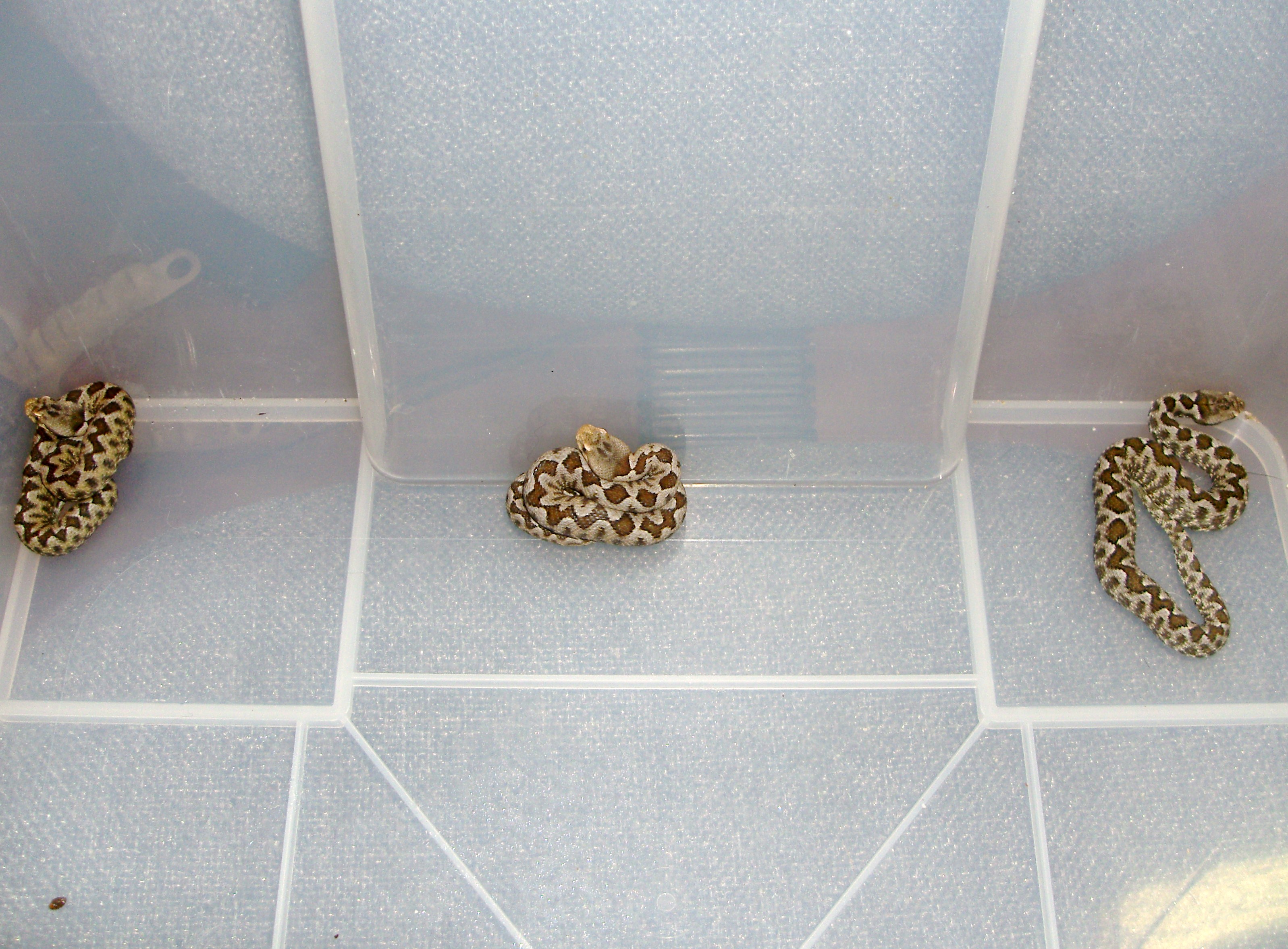 krásné zmijaření kurde... pokud hádek už sám hole sežral, je škoda další valit cpaním, zkoušet živé a různé jiné, ale cpát až naposled, stres může napáchat řetězové reakce u těhlech uprděnejch ciiitlivek pokles okolo 20 a i pod, bude do budoucna stejně nutnej, myslím, že by v téhle velikosti mohly fakchčit i v polovičním boxu, tvářej se někdy, že tam jim je stejně nejlééépe... 15watovka a šmitec