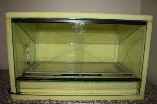Koupíš menší terárko - cca 500,- akvarijní topítko 25W s termostatem, které může být celé pod vodou cca 200,- , dvě tabule polystyrénu a patex "neco" fix 150,- , a máš spolehlivý inkubátor.