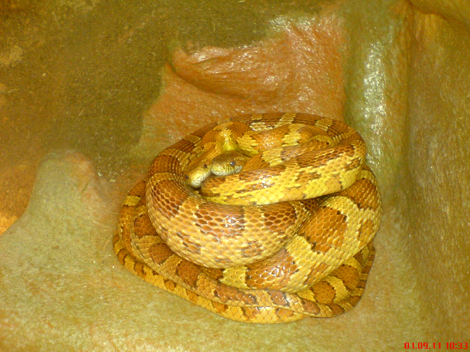 Samec a samice užovky červené(Elaphe guttata) v jednom terárii.