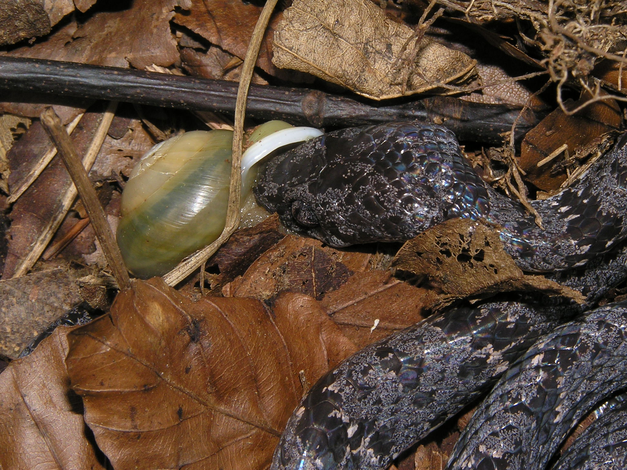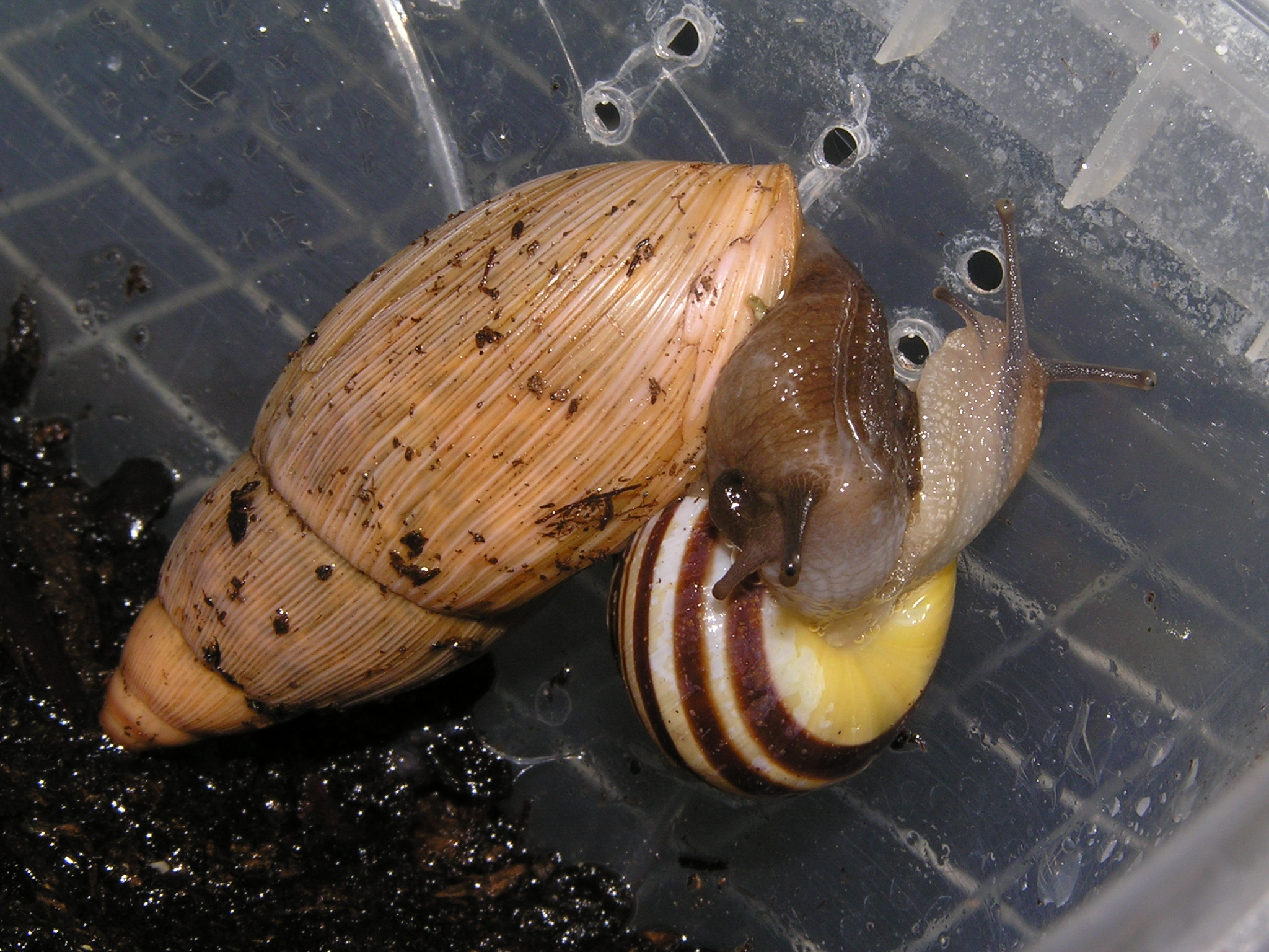 šneky požírá kde co, od ještěrů po hady a další šneky
