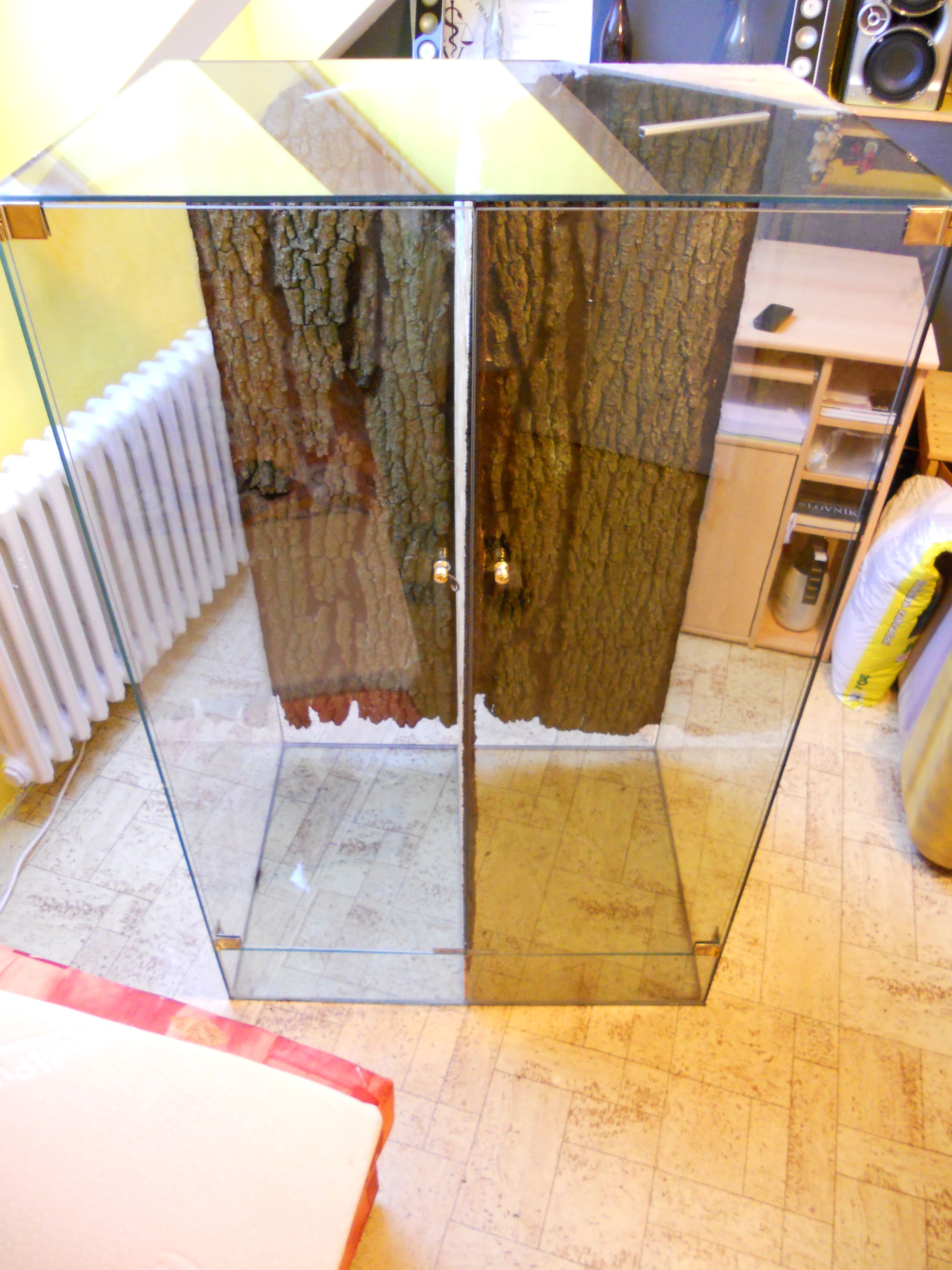 sehnal jsem za flašku toto (viz foto) skříňoterárko 80x60x130 cm. Přepažil sem ho, začal s pozadím atd. Všechno dobrý, ale s takovýmhle systémem uchycení dvířek jsem se ještě nesetkal. Po celém obvodu dvířek je cca 0,5 cm škvíra a jinak má větraný pouze horní roh. Chtěl bych poprosit zkušenější o radu, zdali je to vhodně řešené větrání? Přijde mi to možná málo, tak váhám, jestli nemám seříznout přední 15 cm vysoký soklík o 6 cm a dát po celé přední šířce nerezové jemné 6 cm vysoké pletivo? A co ta škvíra okolo, nebude dělat třeba průvan?