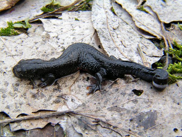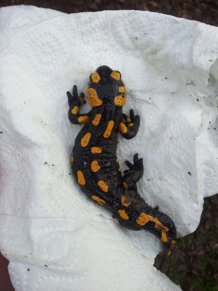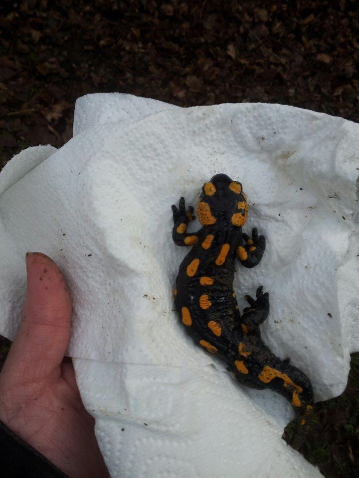 S. salamander okoli Prahy-Davle polojasno, cca 8C Prejety ocas autem, oplachnut, desinfikovan, vypusten zpet na kraj lesa, dale od cesty.. V nedeli dopoledne. Nalezen mnou pri vyletu se saarloosy.. Pri ceste zpet jiz nebyl na miste, tak snad se da dohromady..