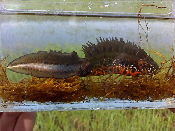 krásny veľký samček Triturus dobrogicus, Záhorie 30.4.