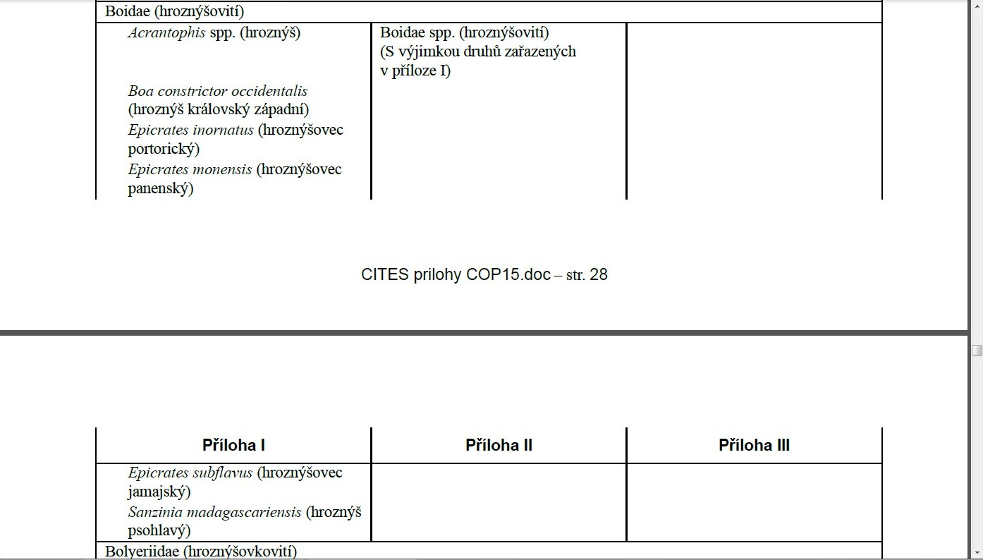 No jo, ale ale Acrantophis dumerili už se jmenuje Boa dumerili a tak fakt nevím, vím jen že mi říkal že jim udělili vyjímku i z obchodní činnosti. Tady jsem ho taky hledal a vůbec v celé tabulce nenašel