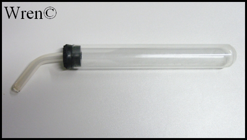 Je to skleněná napaječka ze špuntem, ale nefunguje vždy po nějake době se v půlce trubičky napaječky udělá bublina. Zkoušel jsem to různě uzavírat plné, nebo poloprázdné ale nic vždy po nějake chvilce pulka trubičky prázdná. Vzždy v tom zlomu.