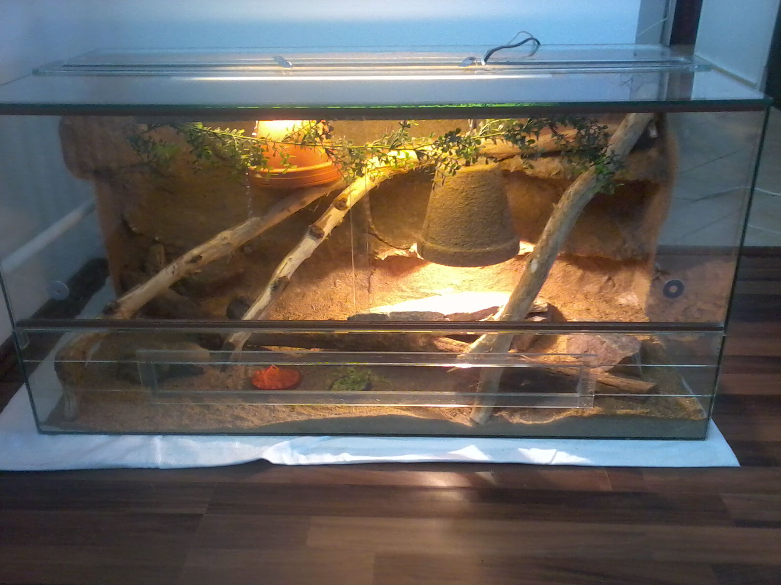 Tak terárium předělané. Jako podestýlka jen písek.