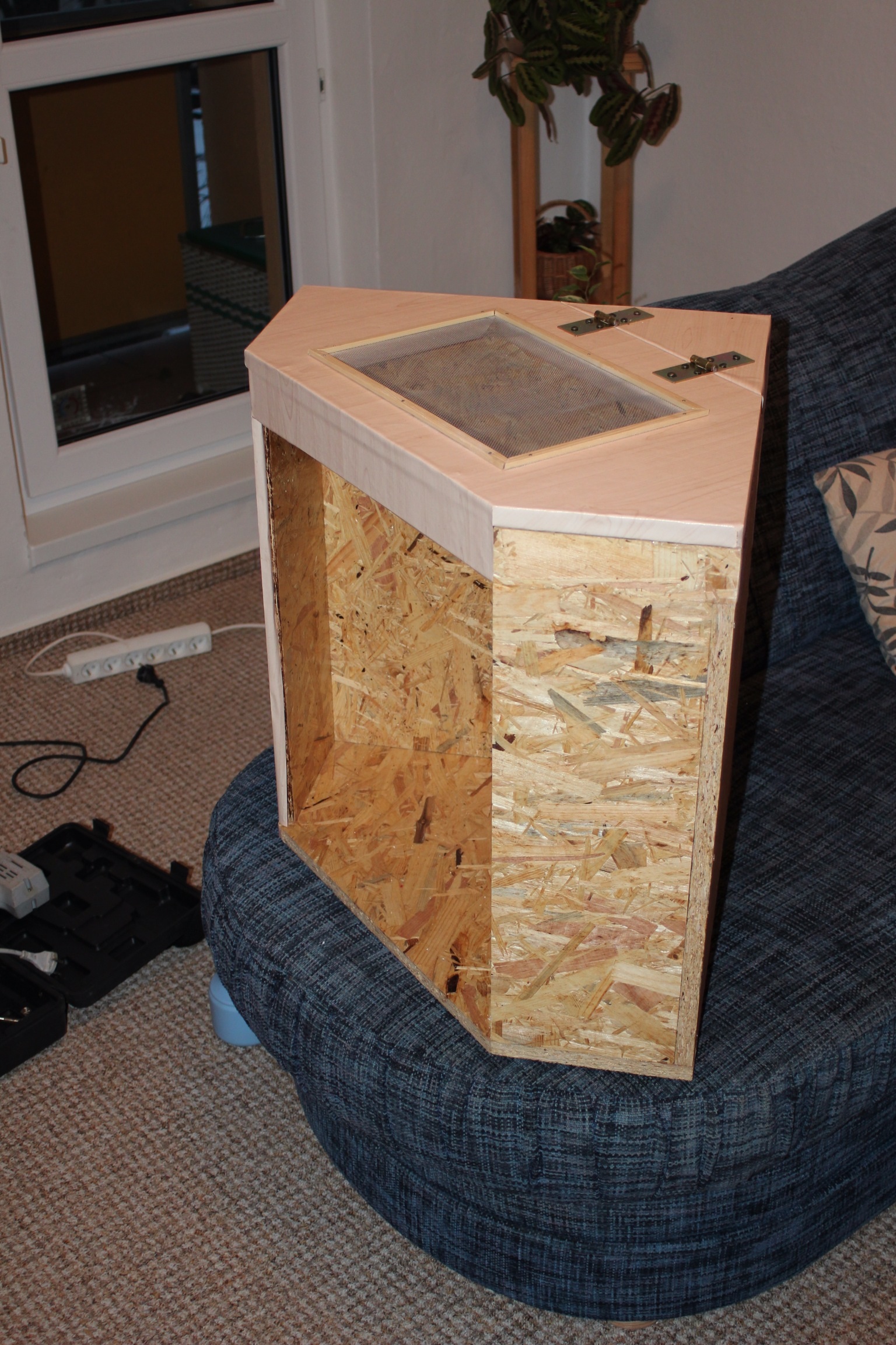 A jeste zneuziju sveho dotazu a zeptam se - trosku neuvazene jsem do vrchni desky teraria vyrezal otvor temer pres celou jeho sirku a prekryl pletivem z hliniku. Ted se ale trosku bojim, jestli to nebude vadit na udrzeni nejake teploty a hlavne vlhkosti. Mate s tim nekdo zkusenosti? Zakryt jde samozrejme vzdycky, ale mrzelo by me to. Jinak v Bocni desce terarka je samozrejme maly kruhovy (asi 5 cm prumer) otvor na cirkulaci vzduchu. Pro lepsi predstavu pridavam obrazek.
