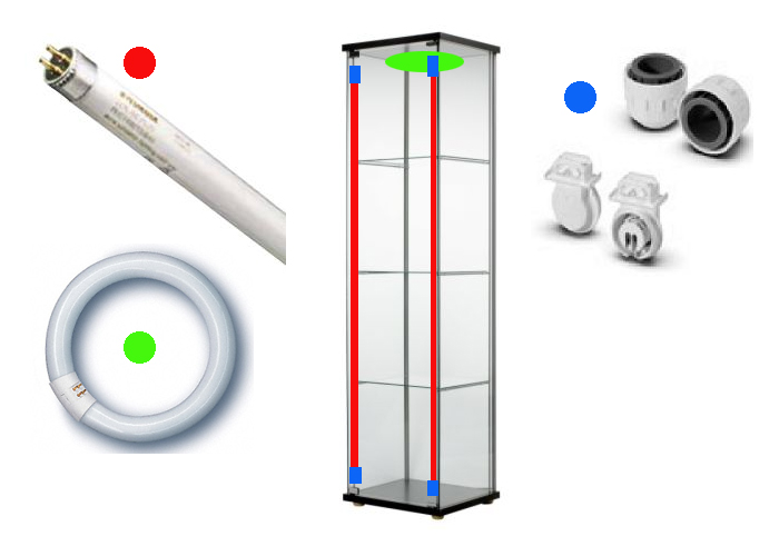Dobrý den, mám dilema s osvětlením, mám vitrínu šířka: 43 cm, hloubka: 37 cm, výška: 163 cm (Je úzká a vysoká protože mám nedostatek místa v bytě) a chtěl bych tam pěstovat nějaké jednoduší orchideje a možná i bromélie, podle nákresu níže uvidíte jak jsem vymyslel osvětlení (doufám že to pujde zrealizovat :) ). A teď k otázce: chtěl bych u přední strany v rohách dvě zářivkové trubice T5 146cm dlouhé a nevím v jaké vatáži mám vybrat. Na výběr mám 35, 49 a 80W (chtěl bych zohlednit hloubku vitríny 37cm a cca mínus 10-15cm bude zadní stěna s vestavěnými květináči pokrytá lignocelem a kůrou). Pak mám ještě na výběr chromatičnost zářivek 830, 840, 865 (tomu moc nerozumím). K zářivkám bych použil vodotěsná patice G5. Na nákresu mám zakreslený zeleně kruhovou zářivku a nevím jestli bude vůbec za potřebí (22 nebo 32W). K ventilaci vitríny bych udělal do stropní stěny otvor, ale nevím zda postačí mřížka nebo budu muset použít třeba PC větráček (okolo předních dveří je cca 0,5cm mezera). Předem děkuji za vaše rady a typy.