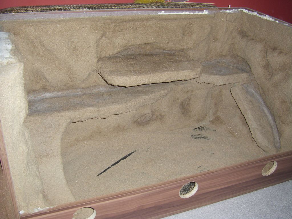 Ahoj všem, tak jsem těsně před dokončením terária. Trvá mi to docela dlouho, jelikož stále nejsem doma, ale už to snad bude... Udělal jsem to třemi vrstvy lepidla a pak duvilax BD20 ve dvou vrstvách posypán pískem.