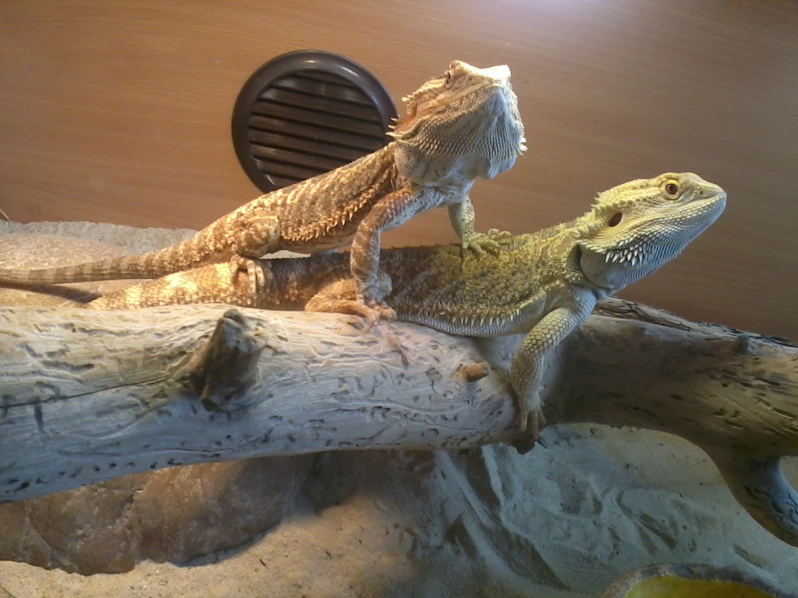Cez zimu pospaval, teraz odkedy zacalo do teraria svietit slnko a zacitil jar, tak sa prebudil a viac ako potrava ho zaujima predvadzanie sa samici. Ta je naopak uplne flegmaticka ale zrala by od rana do vecera :) Za svabom presprintuje terarium hlava nehlava aj cez samca, ktory jej musi utekat z cesty :)