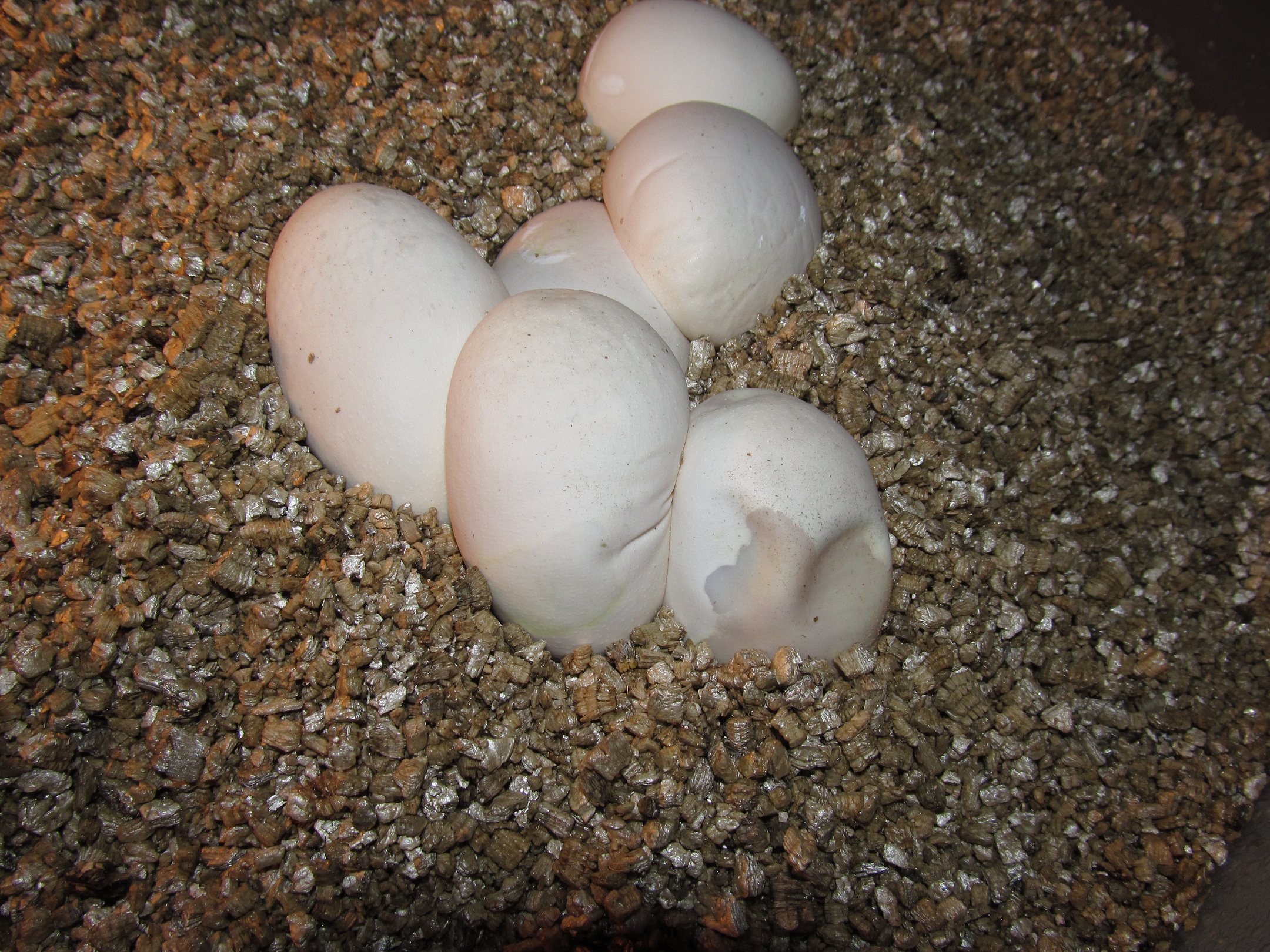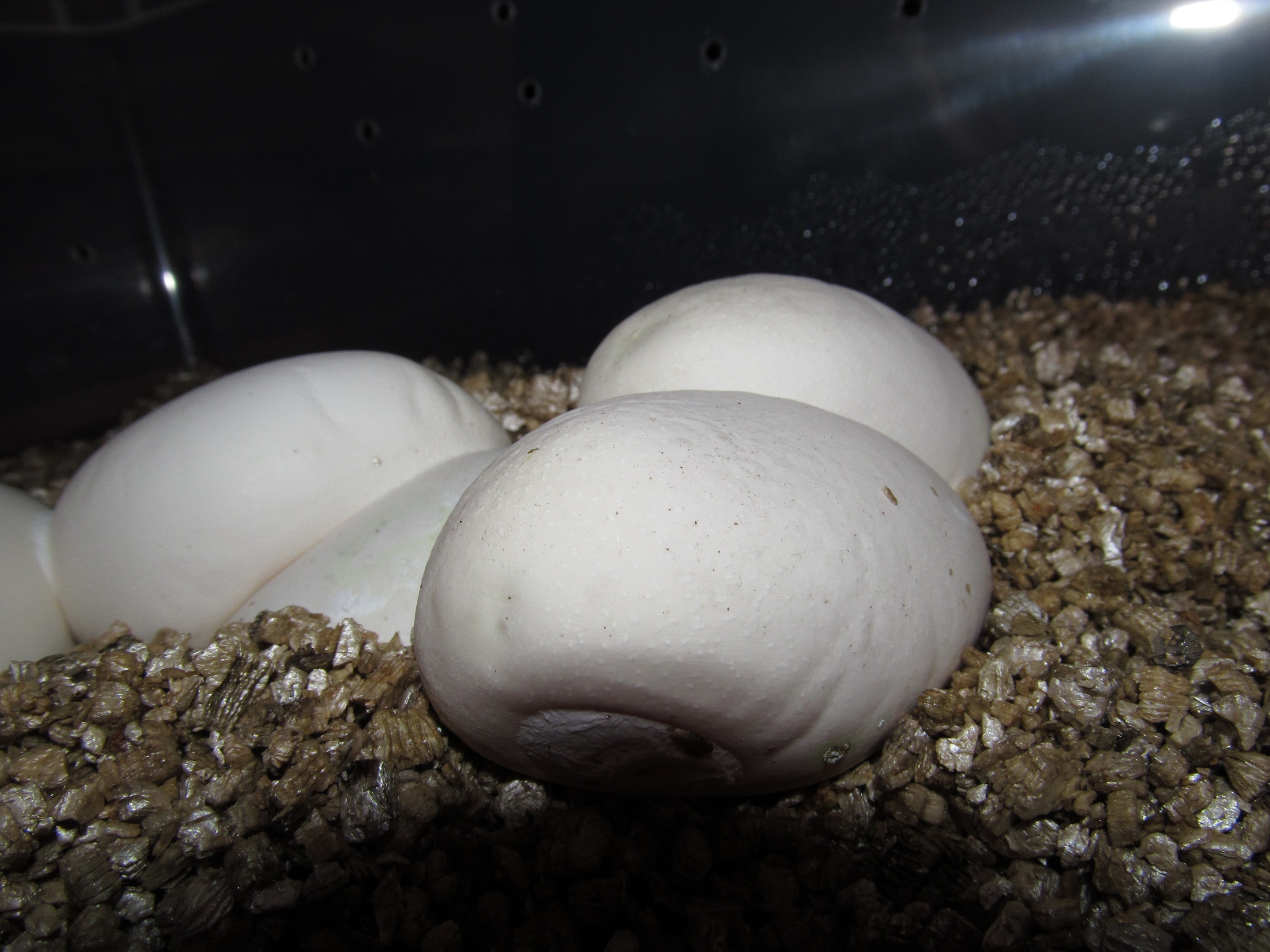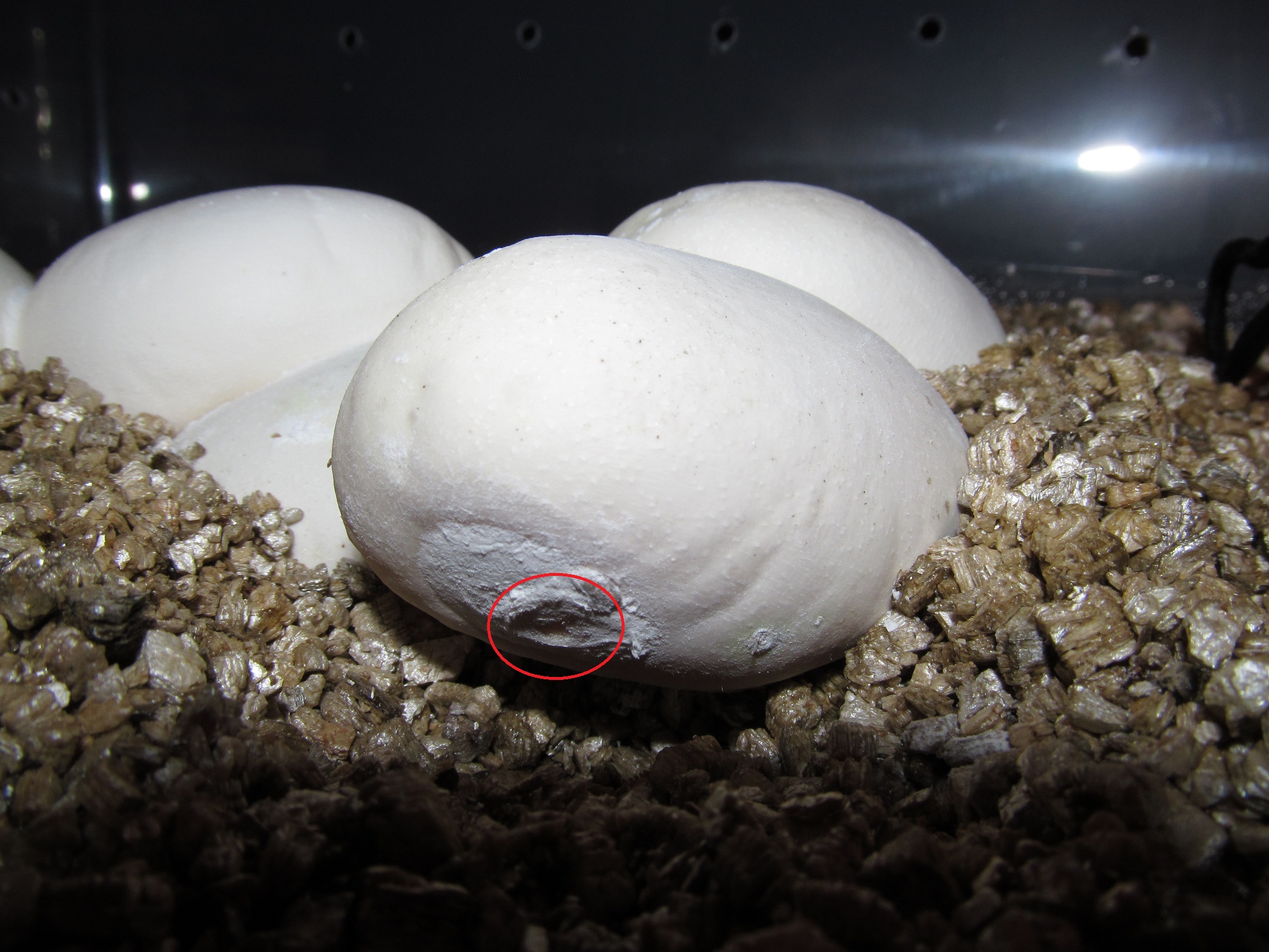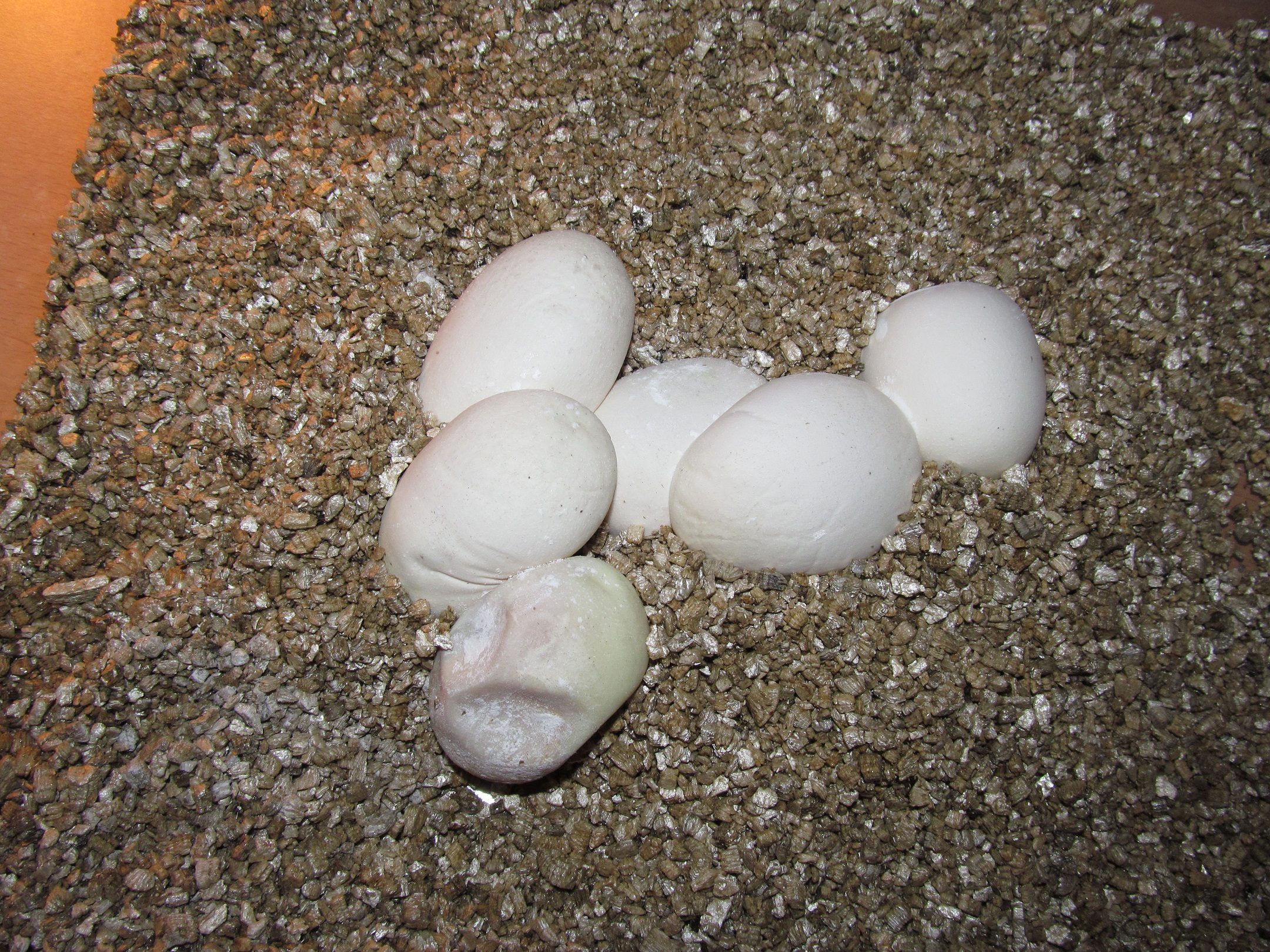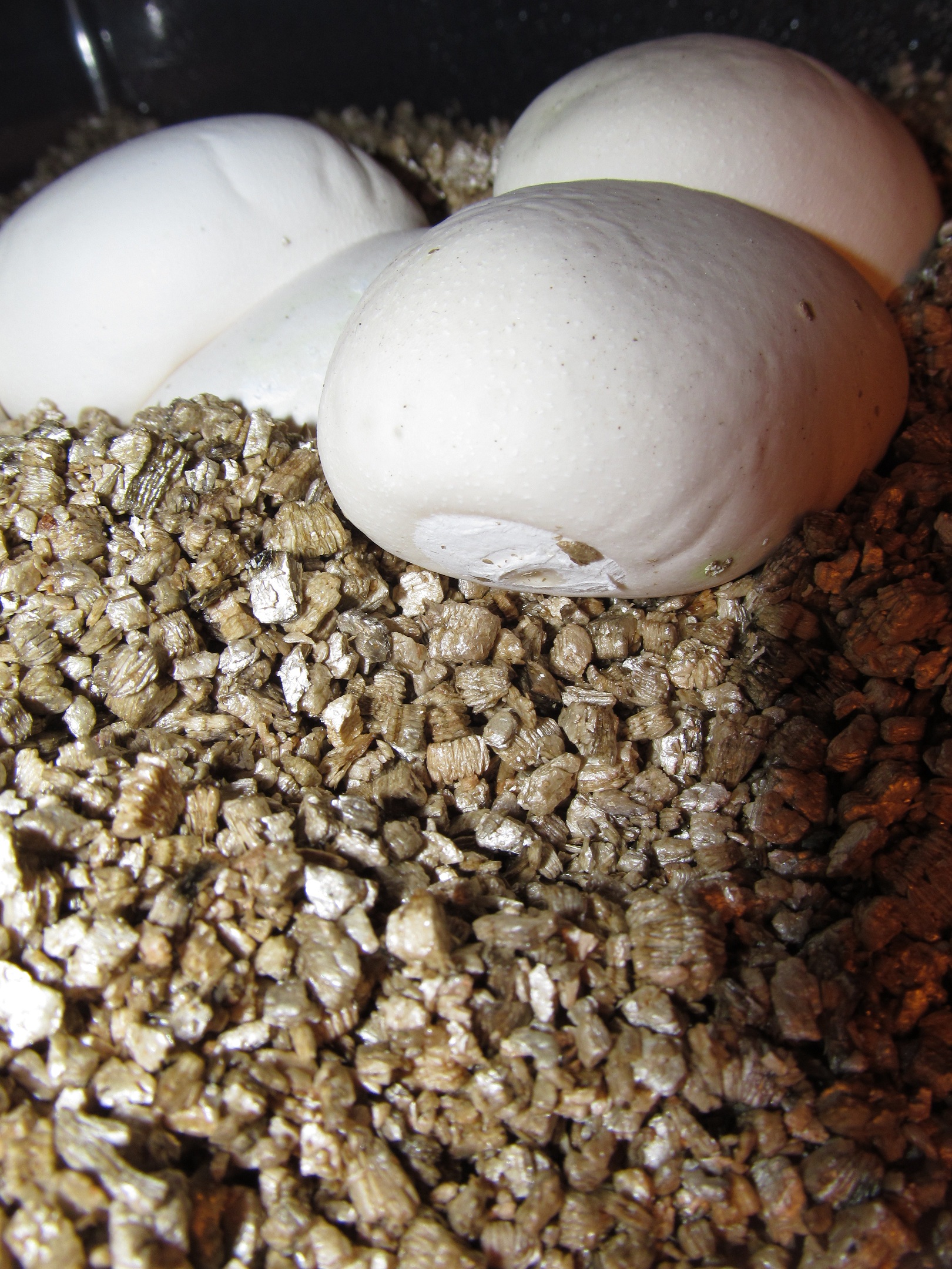 EIDT: Ještě jsem udělal jedno opatření a to, že jsem vejce s prohlubní a "zkažené vejce" nezahrabával celé, ale udělal jsem to tak, aby se ta část vejcete nedotýkala vermikulitu.