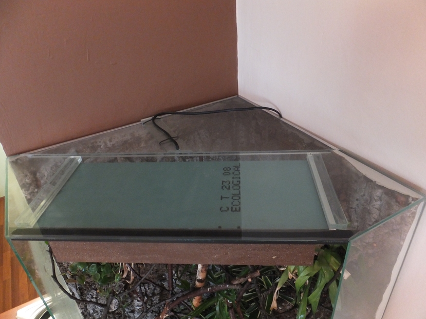 2) vyříznout ve skle cca 40x20 díru a nahradit pletivem + přesunout konzoli nad terárium