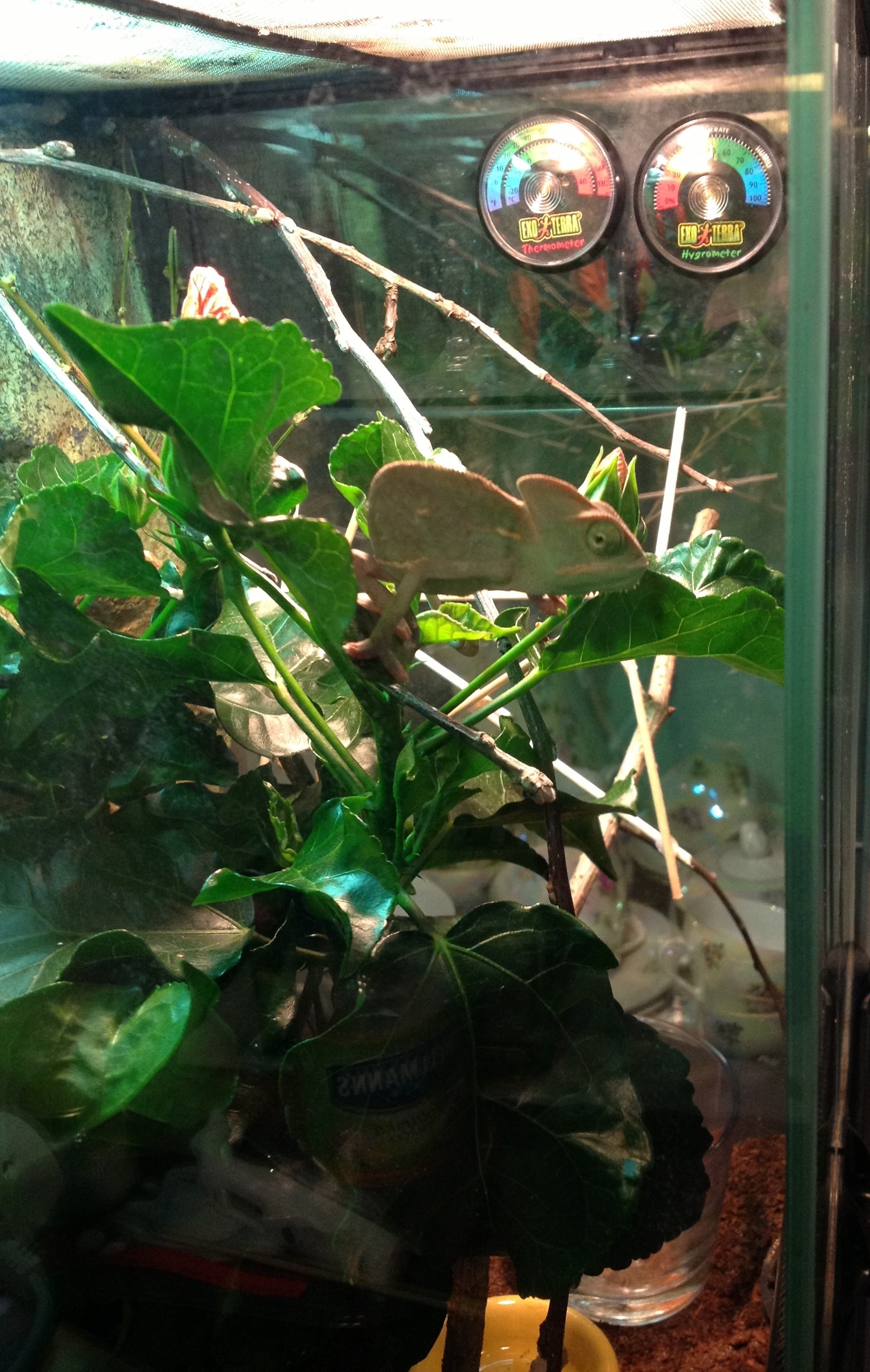 Ja bych se nebal povesit to reptiglo do prostoru.. vhodne to vyvetvit kolem nej, aby chameleon sosal…