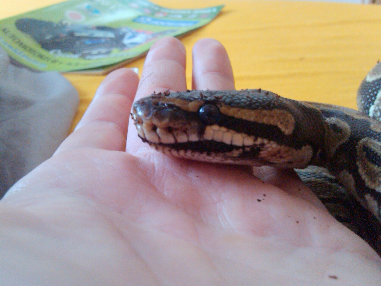 Dnes jsem si všimla, že má moje regina (samec) zvětšenou tlamičku, jakoby oteklou. Tak jsem se podívala blíž, nejdřív to vypadalo, jak kdyby měl tlamu plnou lignocela, ale to jsem se spletla. Spíš to vypadá, jak kdyby ji měl zalepenou uschlou krví