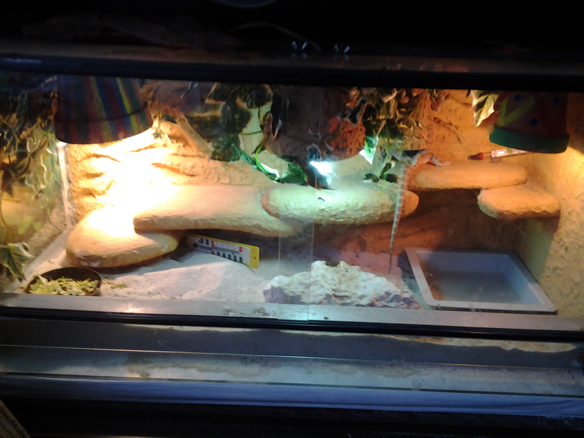 No, pokud zere tak bych to asi nejak vic neresil - ji to za cas prejde. Teplo tam nejspis ma, jak tam nahore nad ni sviti ta zarovka. Osobne bych to sviceni trochu preorganizoval - hlavne doplnil pres celou delku cim silnejsi zarivku - "trubici" aby se to trochu vic prosvetlilo, klidne na ukor jedne z tech vyhrevnych zarovek. Tu druhou - dal bych ji pak jako vyhrevnou pobliz toho UV kompaktu - aby pri vyhrivani byly agamky k nemu dostatecne blizko. Pisek nejspis je to bily kremicity - "akvaristicky", ten osobne nemam rad, nedoporucuju. Vymenil bych za obycejny "do detskych hrist". Ta velikanska miska vpravo je zbytecna, na vodu staci maly "podkvetinac".