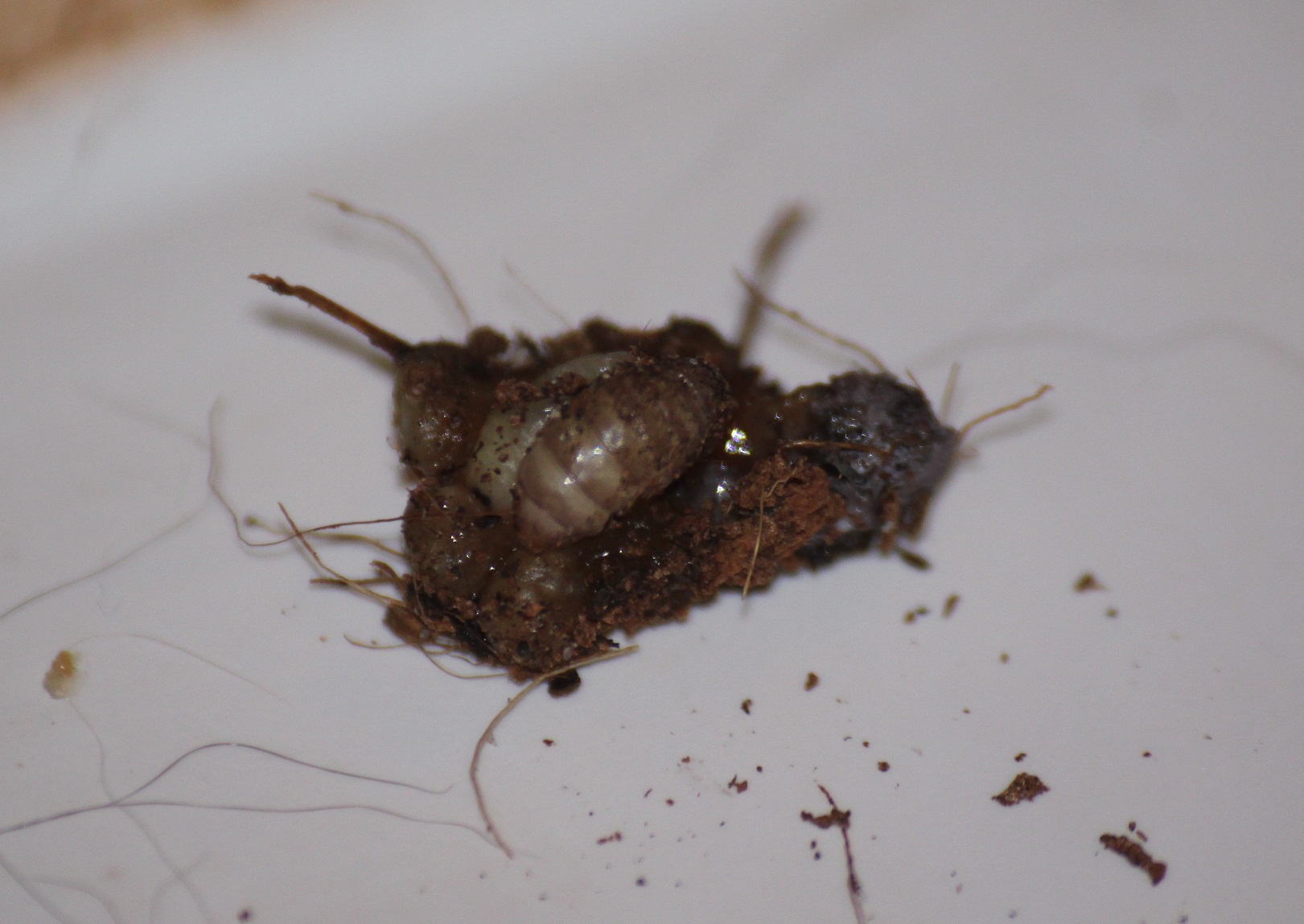 Dlouho jsem si myslel, že je jenom nažraná, protože se moc jako gravidní nechovala. A tak jsem jí po asi 6 dnech od posledního krmení jenom tak cvičně zkusil dát středního cvrčka a vzala si. Co mě překvapilo je, že si celkem ukázkově vyhrabala díru pod kůrou a den před tím se šla vyhřát pod žárovku a viděl jsem jí jak pije. Což mě potěšilo. A potom tohle.